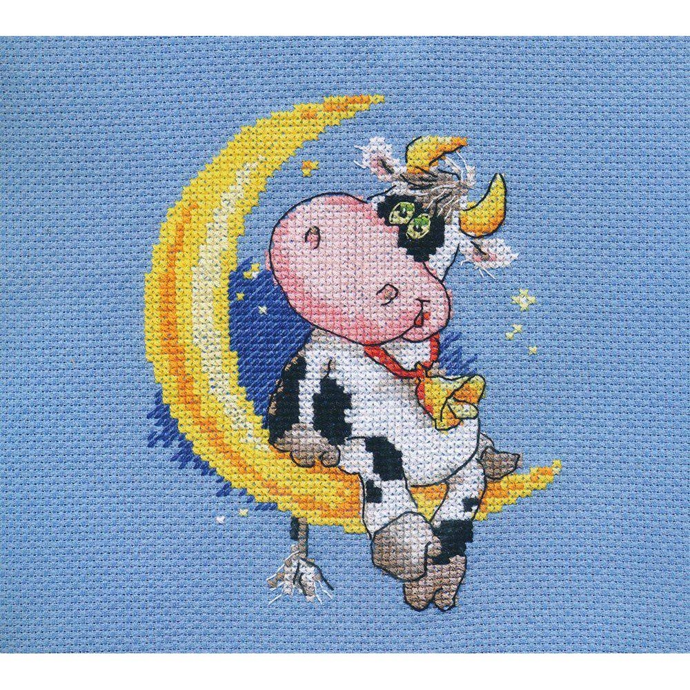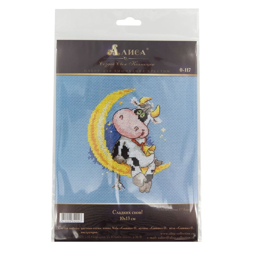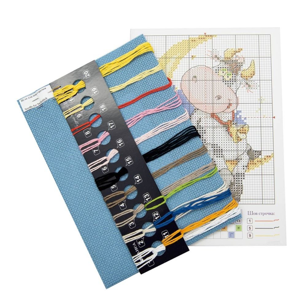 Kit contains: fabric Aida canvas 14ct. dark blue, mouline threads (100% cotton) 13 colours, needle, chart. Finished size: 10x13cm/3.94x5.12". Frame is not included