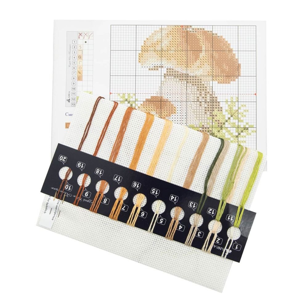 Kit contains: fabric Aida canvas 14ct. white, mouline threads (100% cotton) 13 colours, needle, chart. Finished size: 10x10cm/3.94x3.94". Frame is not included