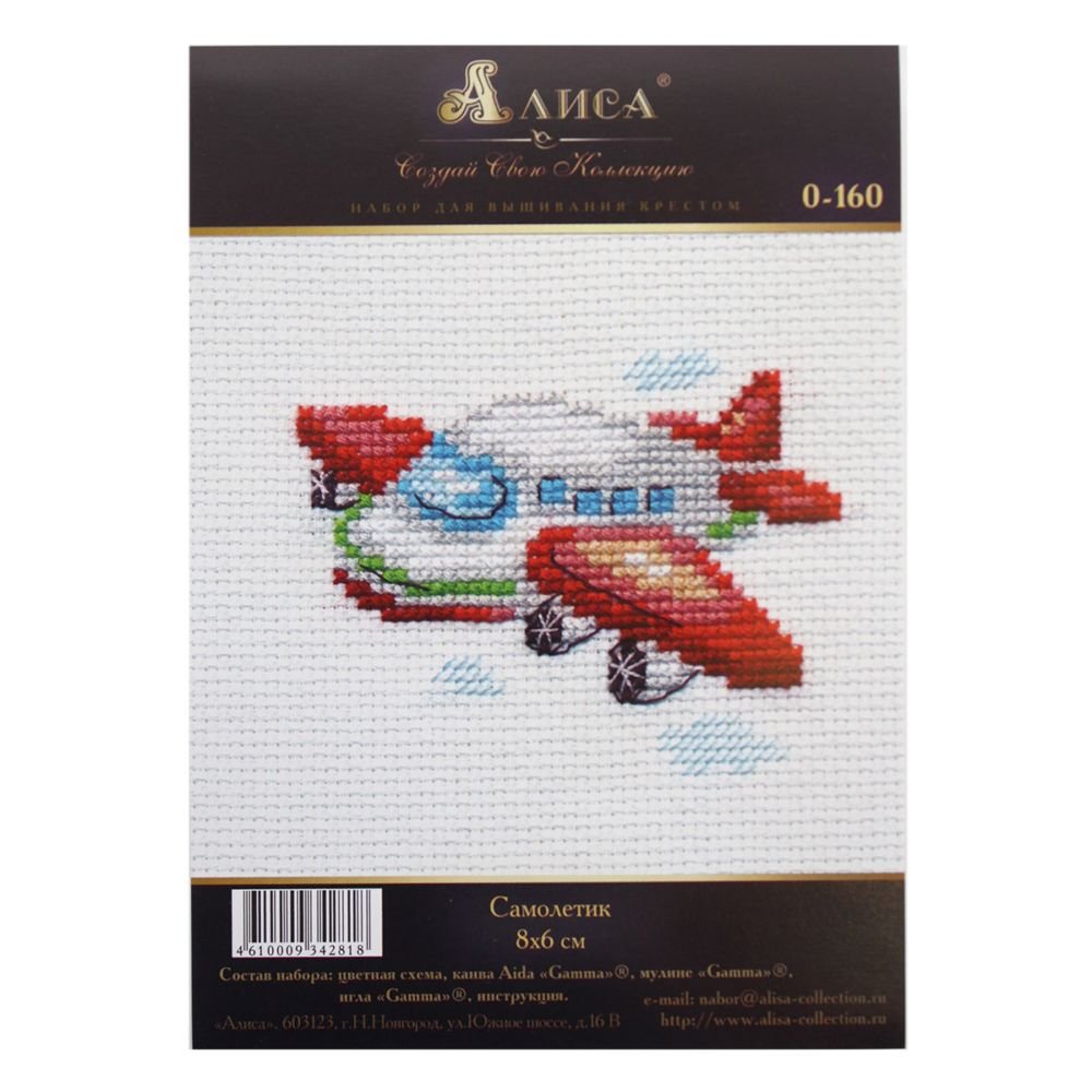 Kit contains: fabric Aida canvas 14ct. white, mouline threads (100% cotton) 10 colours, needle, chart. Finished size: 8x6cm/3.15x2.36". Frame is not included