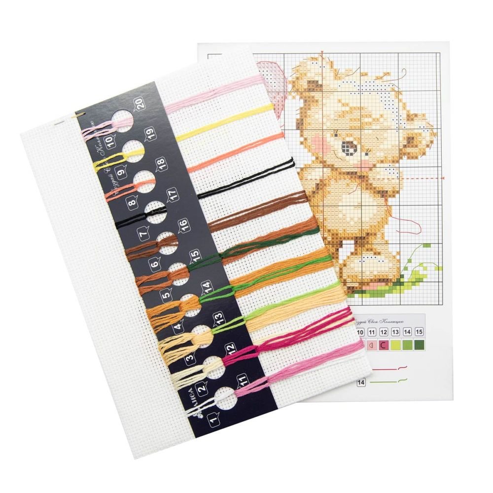 Kit contains: fabric Aida canvas 14ct. white, mouline threads (100% cotton) 15 colours, needle, chart. Finished size: 11x12cm/4.33x4.72". Frame is not included