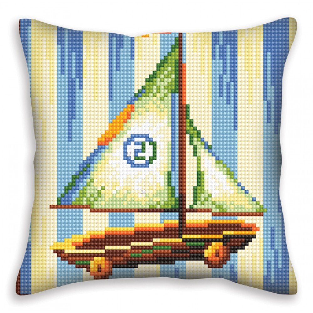 Kit contains: fabric Zweigart Stramine stamped 6ct. beige, acrylic threads, needle, chart. Finished size: 40x40cm/15.75x15.75". Frame, pillow, and pillowcase are not included. Zippered pillowcase you can additionally purchase "Cushion Finishing Kit", product code: CDA 5999