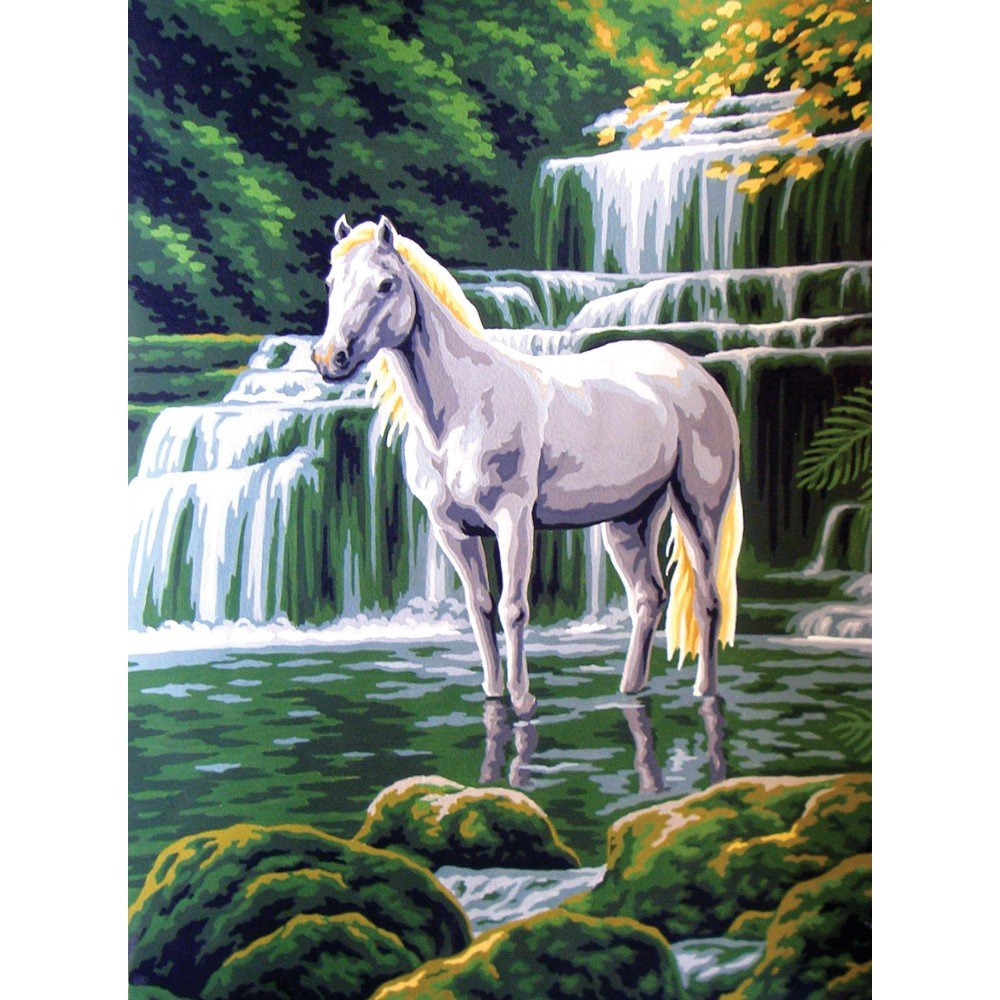 Especificaciones Cañamazo estampado - Caballo blanco en la cascada