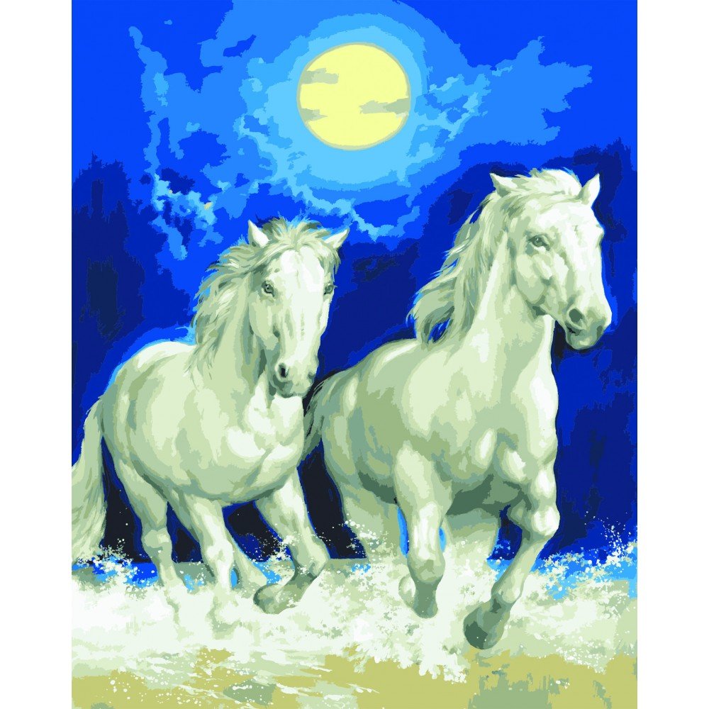 Cañamazo estampado - Caballos blancos a la luz de la luna