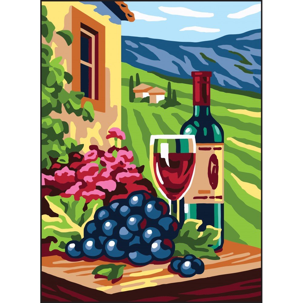 Cañamazo estampado - Vino y uva