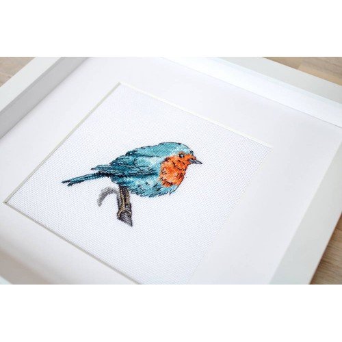 El kit incluye: tela Zweigart Bellana 20ct. blanca, hilos Anchor mouline 19 colores, aguja, gráfico. Tamaño final: 8.5x8cm/3.35x3.15". Marco no incluido