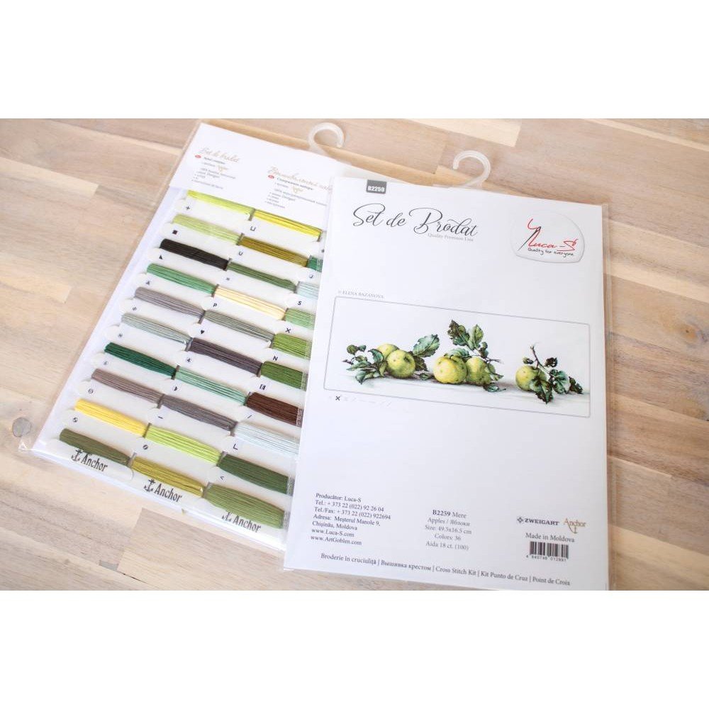 El kit incluye: tela Zweigart Aida 18ct. lechosa, hilos Anchor mouline 36 colores, aguja, gráfico. Tamaño final: 49.5x16.5cm/19.49x6.5". Marco no incluido