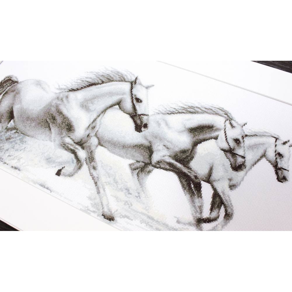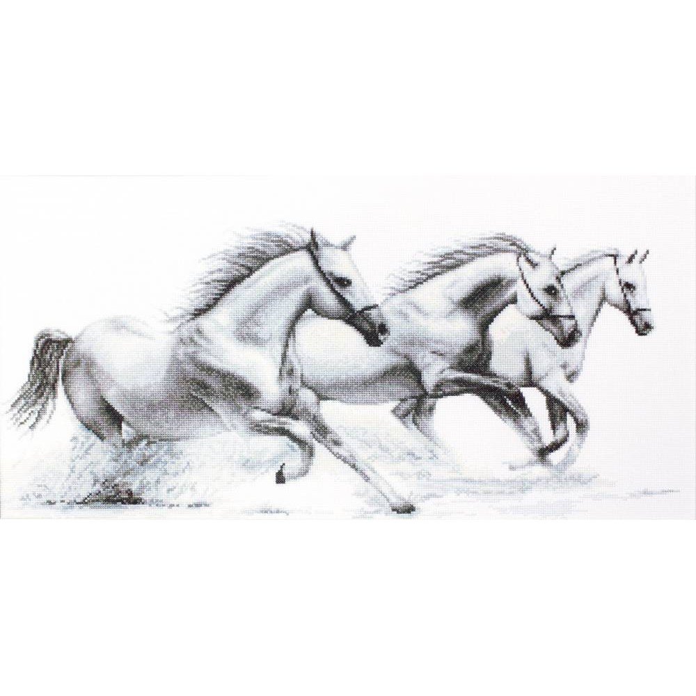 El kit incluye: tela Zweigart Aida 16ct. blanca, hilos Anchor mouline 16 colores, aguja, gráfico. Tamaño final: 47x21.5cm/18.5x8.46". Marco no incluido