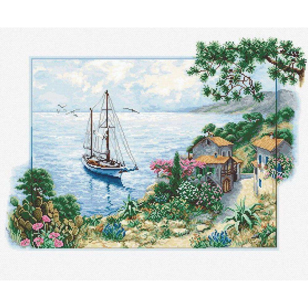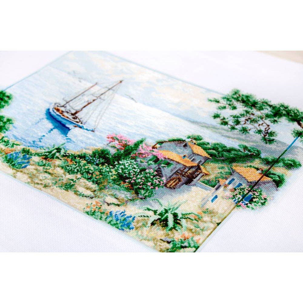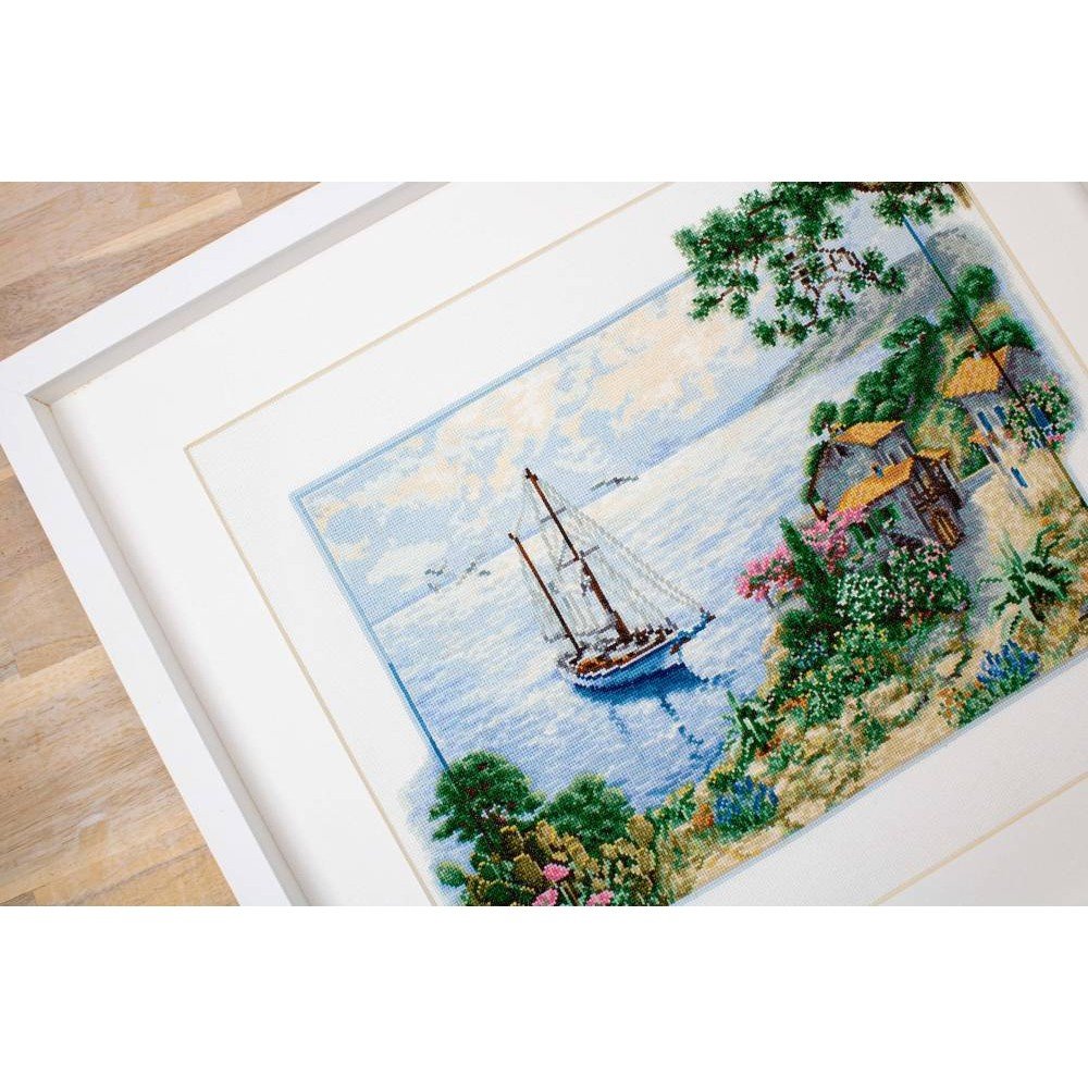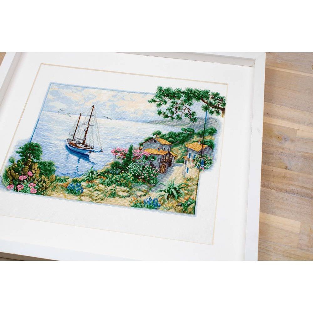 El kit incluye: tela Zweigart Aida 18ct. blanca, hilos Anchor mouline 48 colores, aguja, gráfico. Tamaño final: 38.5x28cm/15.16x11". Marco no incluido