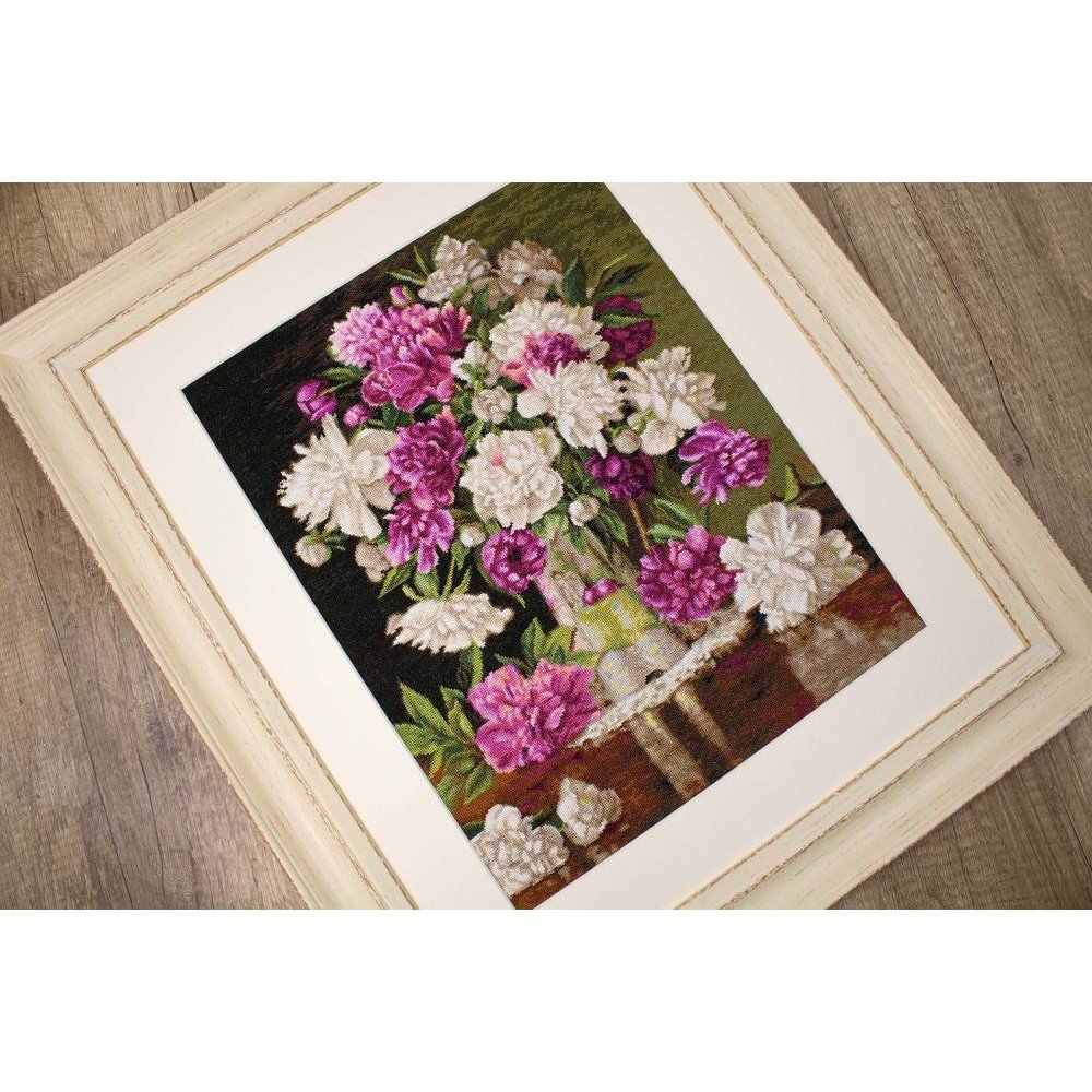 El kit incluye: tela Zweigart Aida 18ct. marfil, hilos Anchor mouline 52 colores, aguja, gráfico. Tamaño final: 34x42cm/13.39x16.54". Marco no incluido