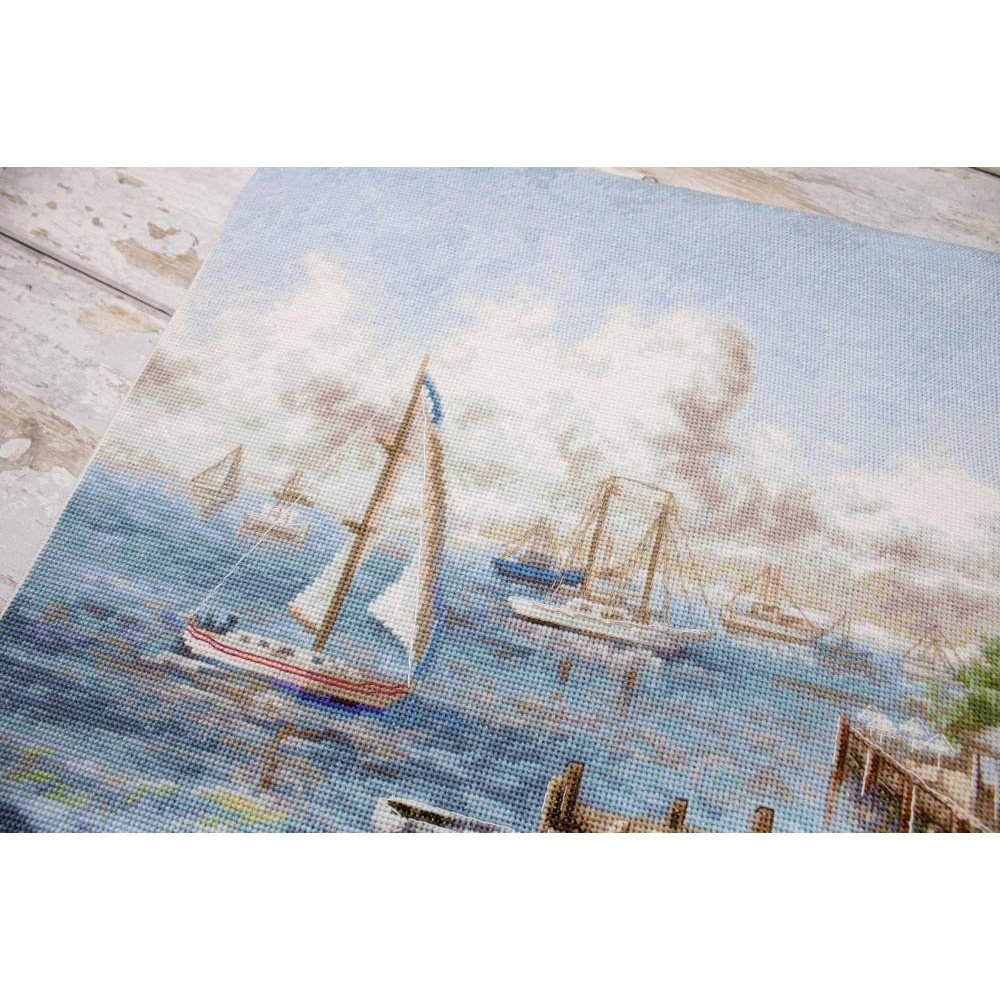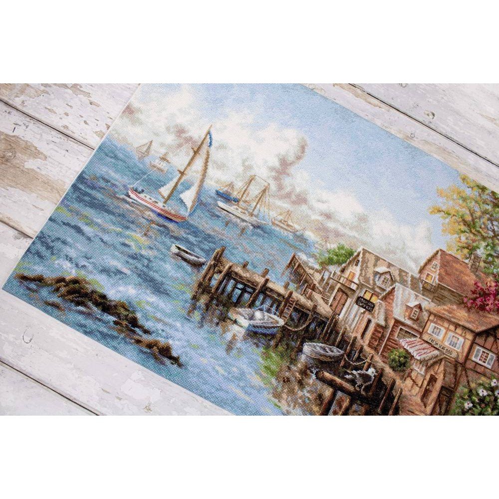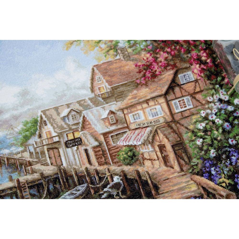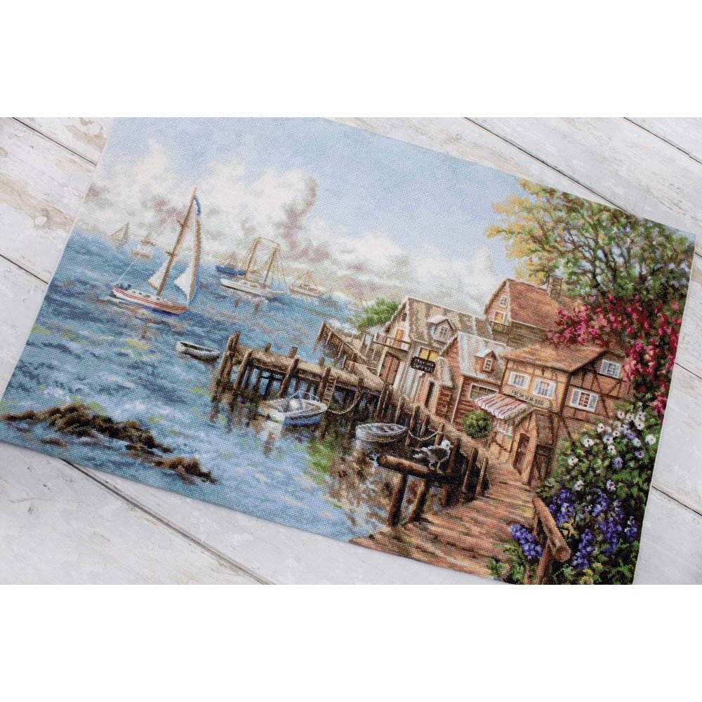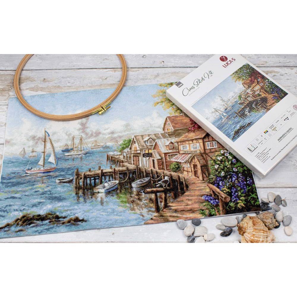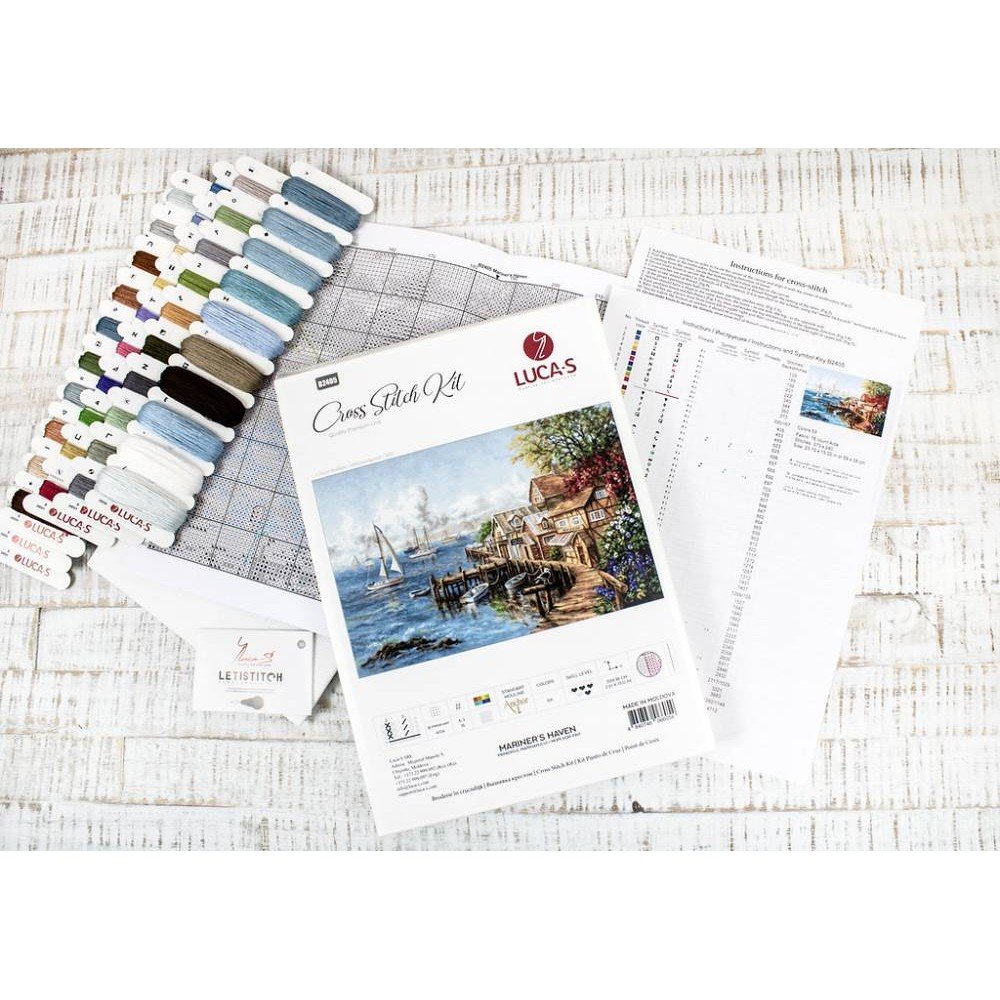 El kit incluye: tela Zweigart Aida 16ct. blanca, hilos Anchor mouline 59 colores, aguja, gráfico. Tamaño final: 59x38cm/23.23x14.96". Marco no incluido