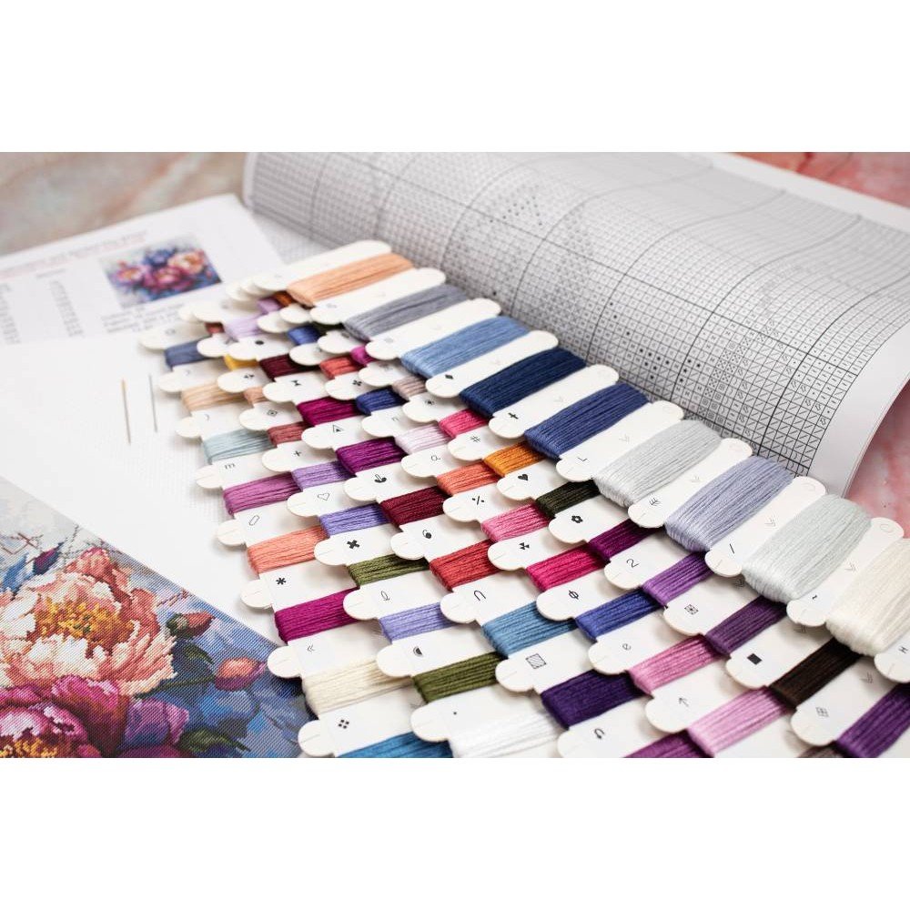 El kit incluye: tela Zweigart Aida 16ct. blanca, hilos Luca-S mouline 66 colores, aguja, gráfico. Tamaño final: 32x32cm/12.6x12.6". Marco no incluido