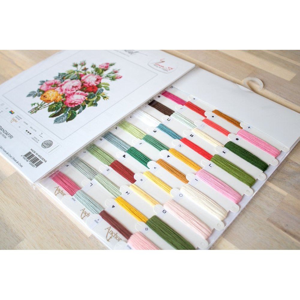 El kit incluye: tela Zweigart Aida 16ct. lechosa, hilos Anchor mouline 42 colores, aguja, gráfico. Tamaño final: 25x32cm/9.84x12.6". Marco no incluido
