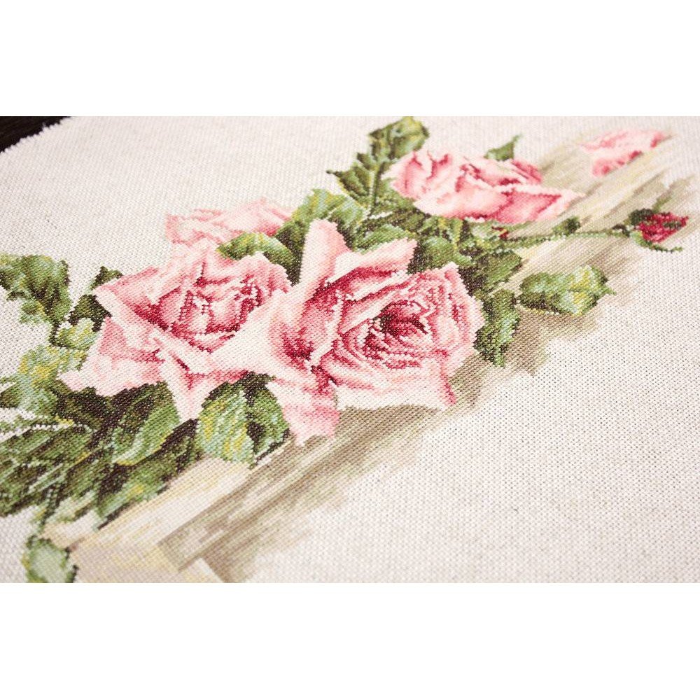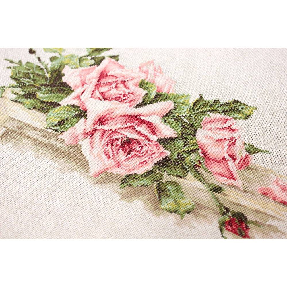 El kit incluye: tela Zweigart Perleinen 20ct. lino, hilos Anchor mouline 27 colores, aguja, gráfico. Tamaño final: 32x17cm/12.6x6.69". Marco no incluido