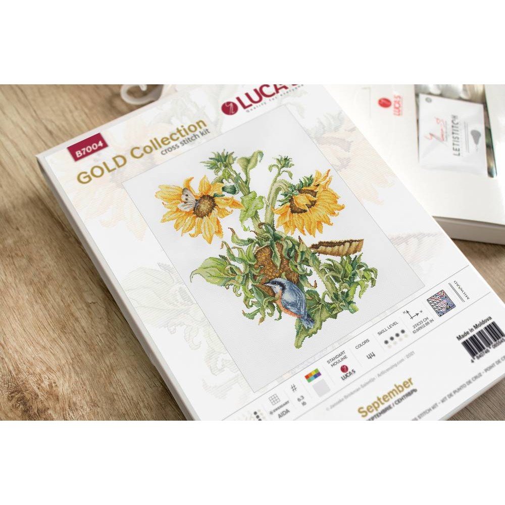 El kit incluye: tela Zweigart Aida 16ct. blanca, hilos Anchor mouline 44 colores, aguja, gráfico. Tamaño final: 27x33cm/10.63x12.99". Marco no incluido