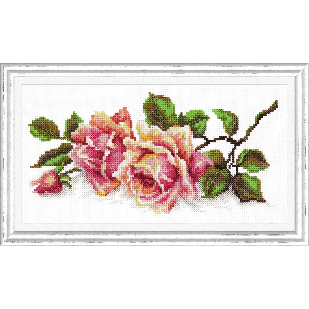 El kit incluye: tela Zweigart Aida 14ct. blanca, hilos Gamma mouline 26 colores, aguja, gráfico. Tamaño final: 25x12cm/9.84x4.72". Marco no incluido