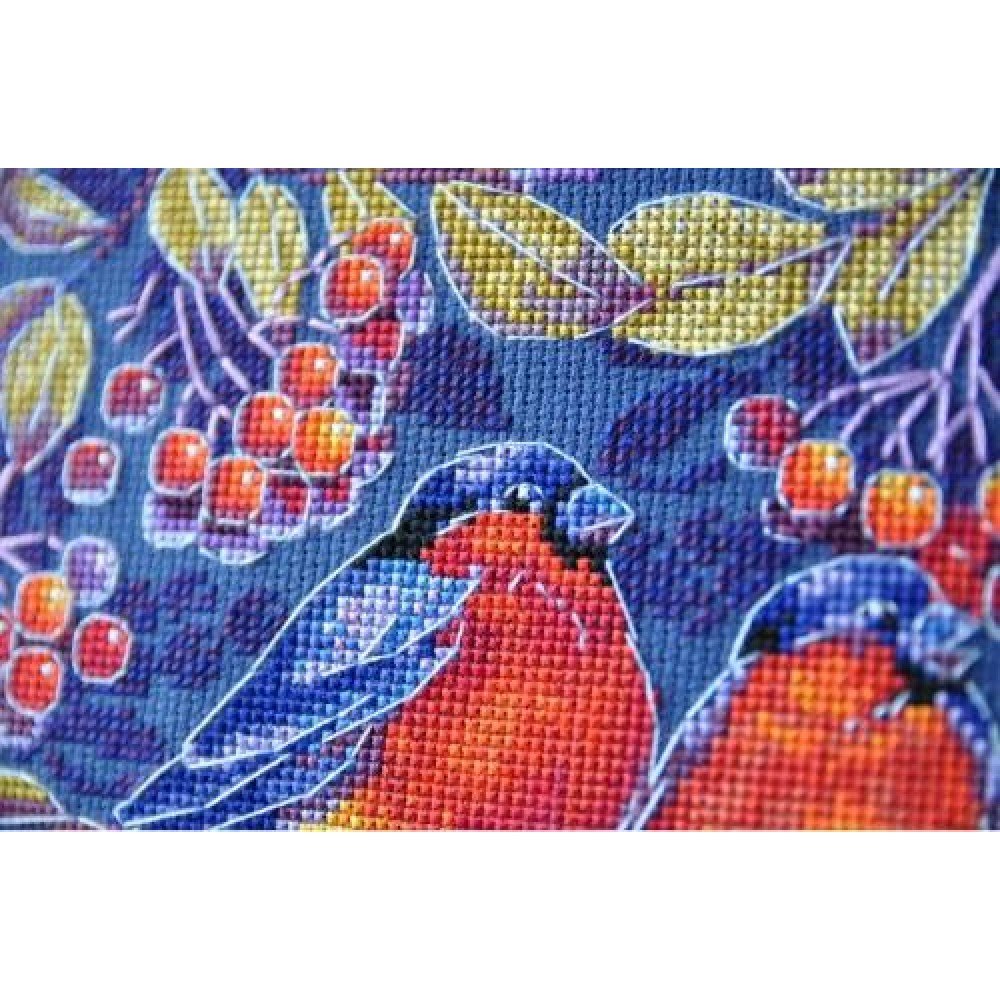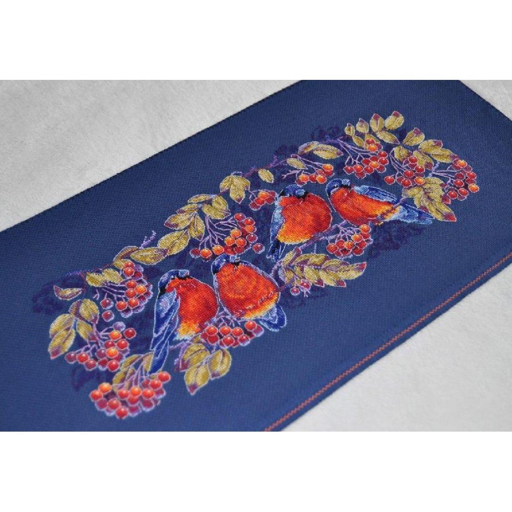 El kit incluye: tela Zweigart Aida 16ct. azul oscuro, hilos DMC mouline 24 colores, aguja, gráfico. Tamaño final: 38x15cm/14.96x5.91". Marco no incluido
