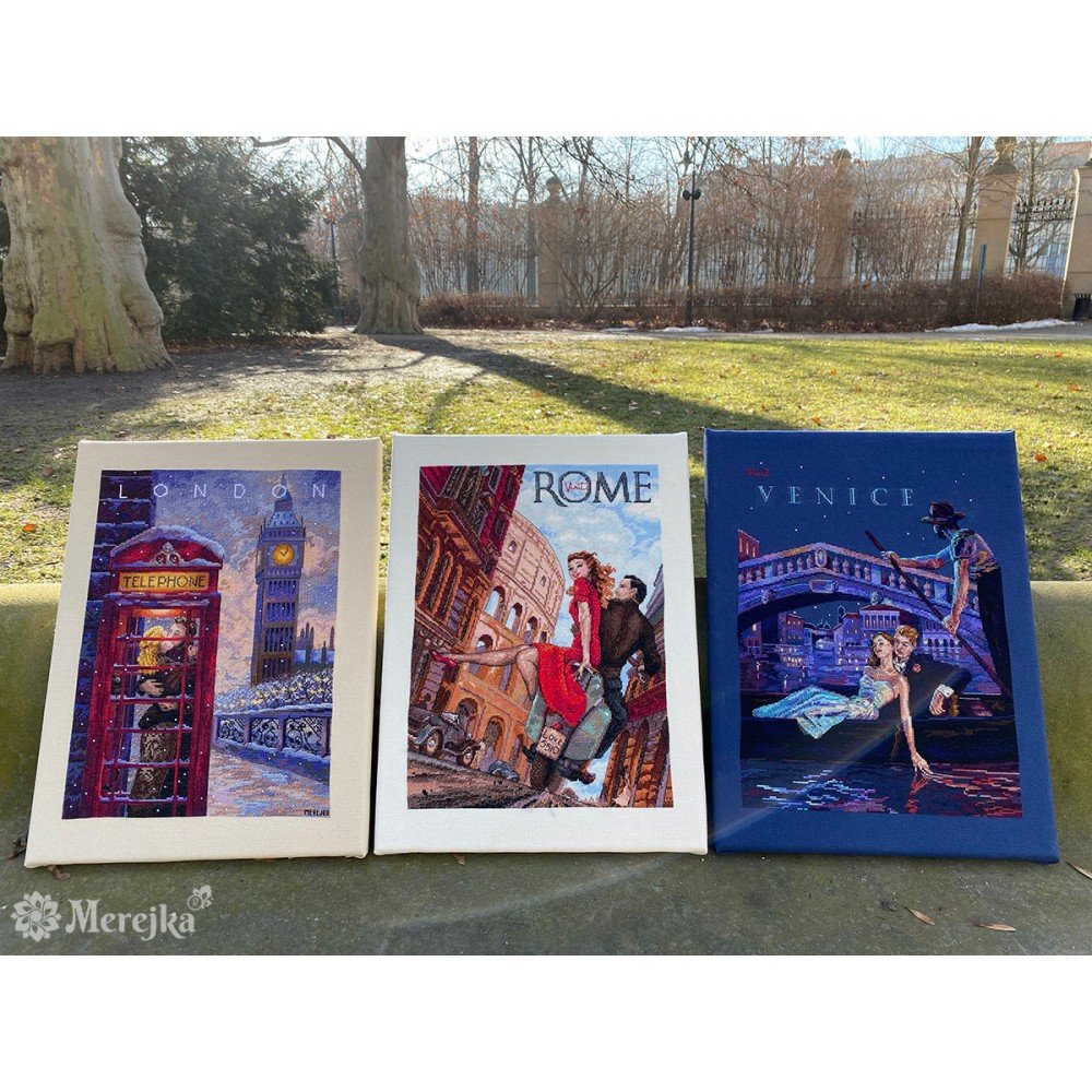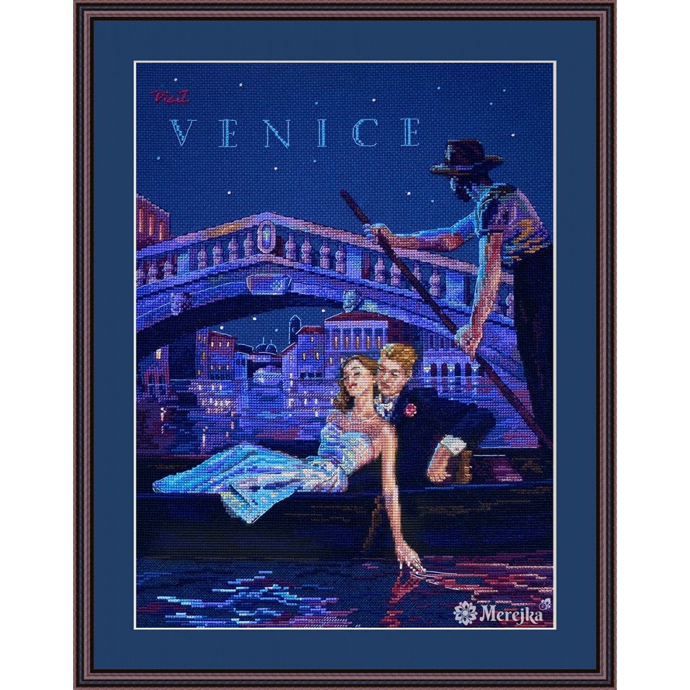 El kit incluye: tela Zweigart Aida 16ct. azul noche, hilos DMC mouline 33 colores, aguja, gráfico. Tamaño final: 33x24.5cm/12.99x9.65". Marco no incluido