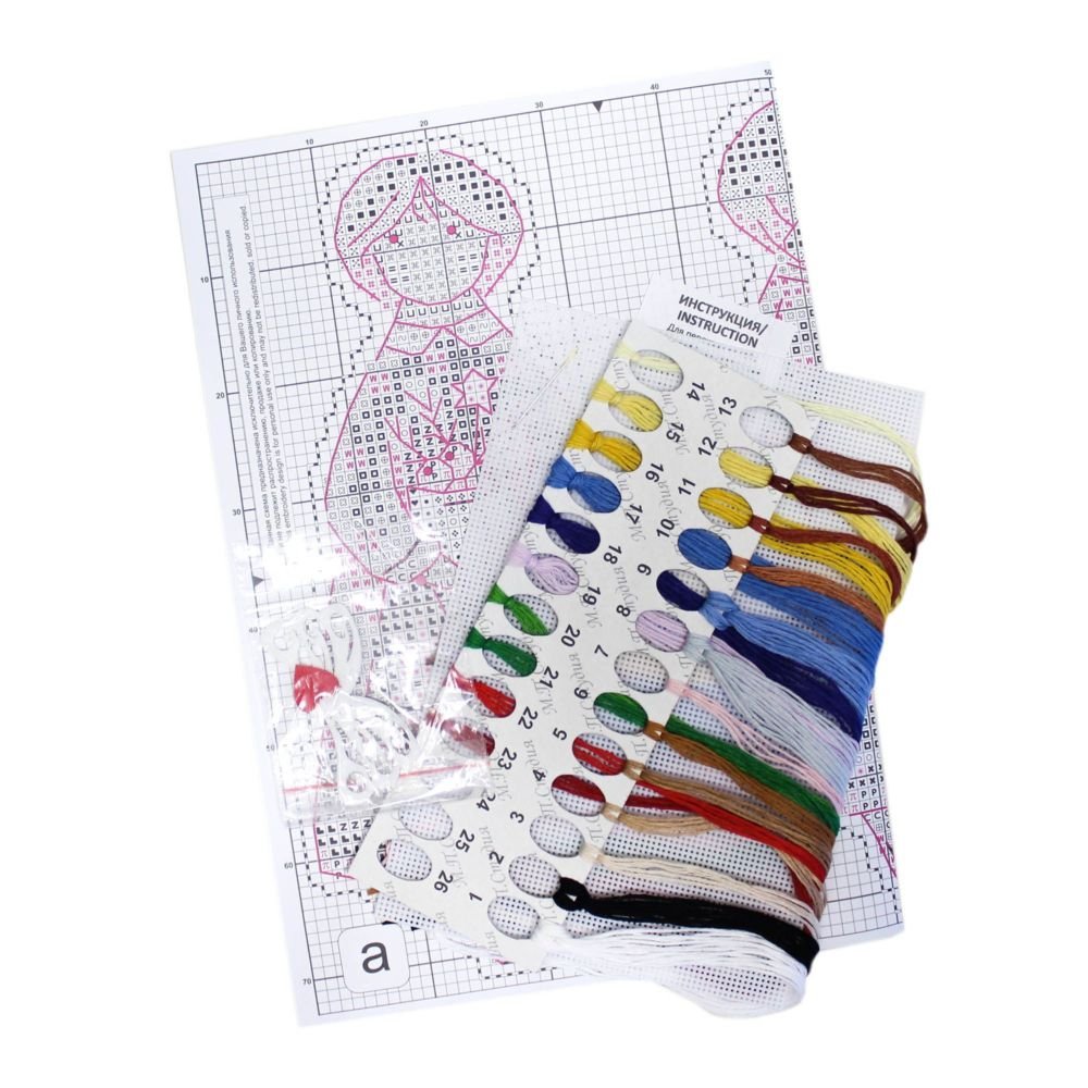 El kit incluye: cañamazo de plástico (plastic canvas) 14ct. blanco, hilos Kirov mouline 23 colores, aguja, gráfico. Tamaño final: 6x13cm/2.36x5.12". Marco no incluido