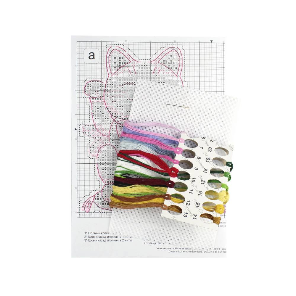 El kit incluye: cañamazo de plástico (plastic canvas) 14ct. blanco, hilos Kirov mouline 19 colores, aguja, gráfico. Tamaño final: 10x13cm/3.94x5.12". Marco no incluido