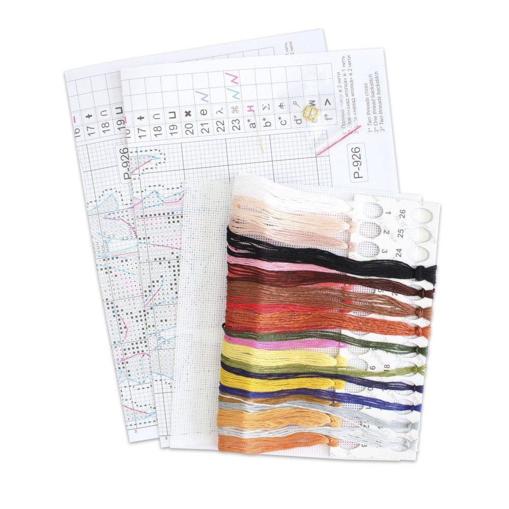 El kit incluye: cañamazo de plástico (plastic canvas) 14ct., mouline Kirov 23 colores, aguja, gráfico. Tamaño final: 18x12cm/7.09x4.72". Marco no incluido