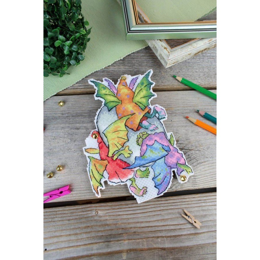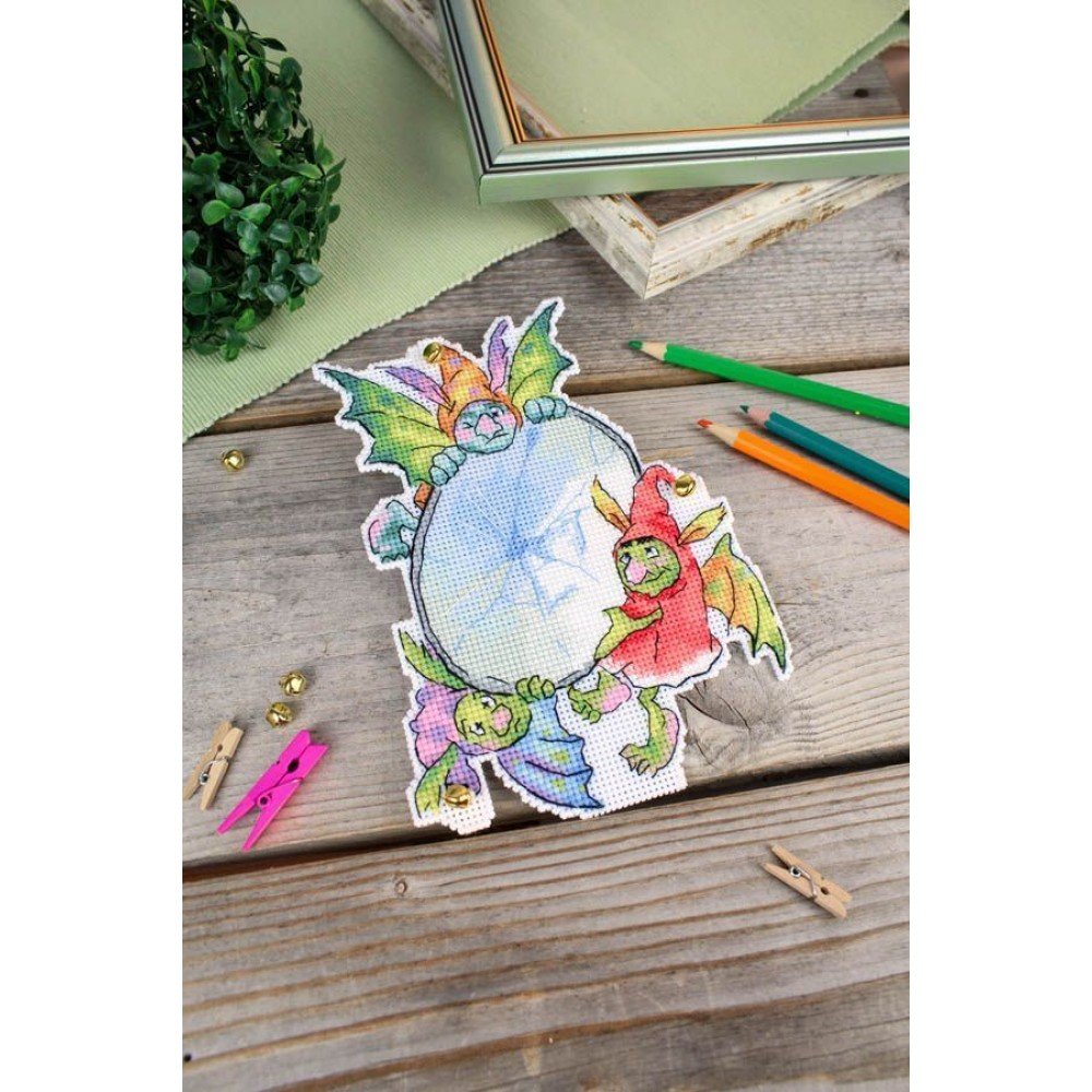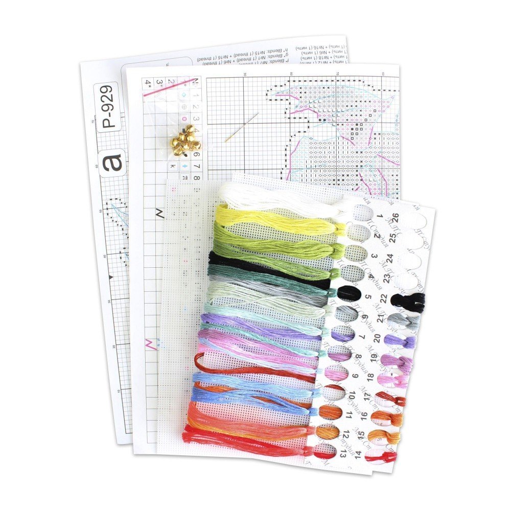 El kit incluye: cañamazo de plástico (plastic canvas) 14ct., mouline Kirov 22 colores, aguja, gráfico. Tamaño final: 18x13cm/7.09x5.12". Marco no incluido