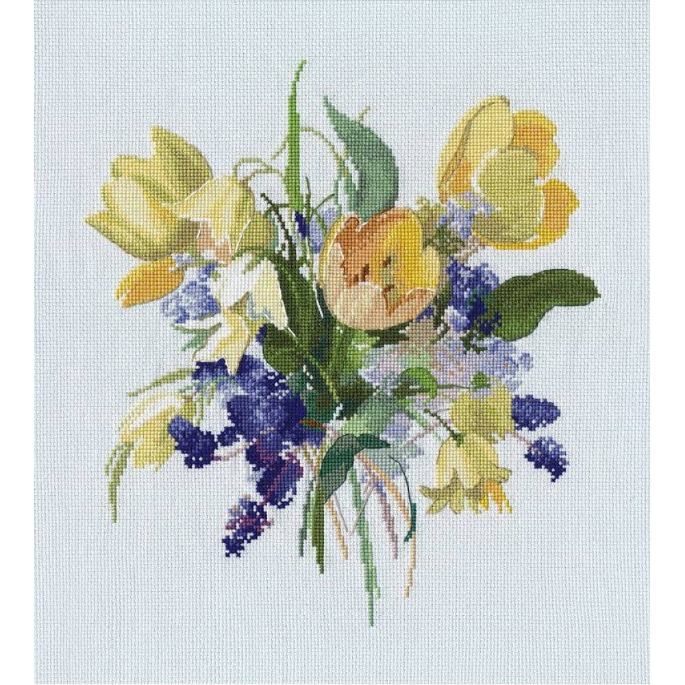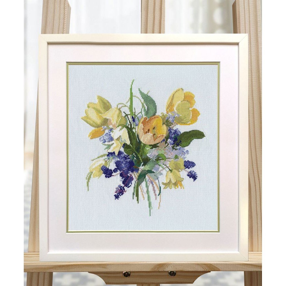 El kit incluye: tela Zweigart Aida 16ct. azul claro, hilos Luca-S mouline 26 colores, aguja, gráfico. Tamaño final: 23x26cm/9.06x10.24". Marco no incluido