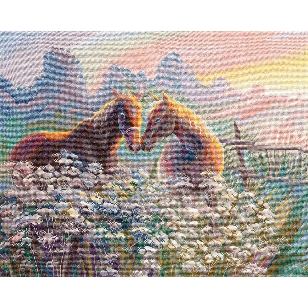 El kit incluye: tela Zweigart Aida 16ct. blanca, hilos DMC mouline 36 colores, aguja, gráfico. Tamaño final: 40x33cm/15.75x12.99". Marco no incluido