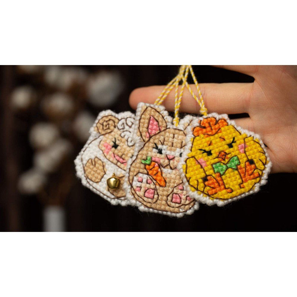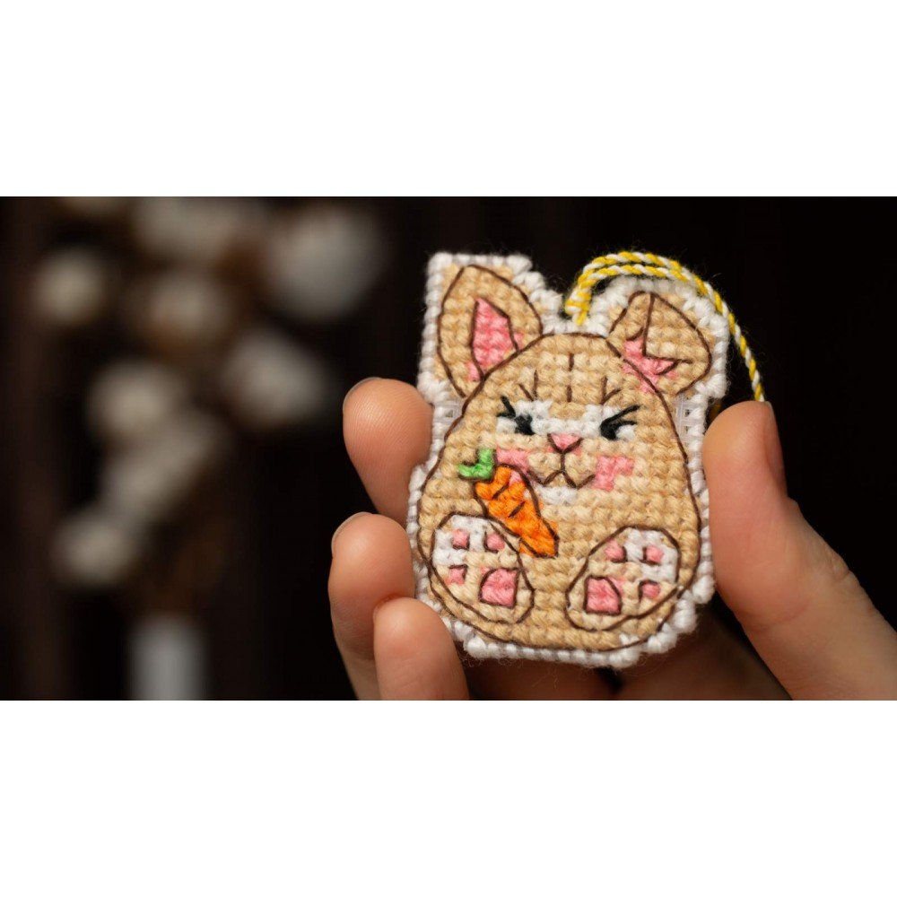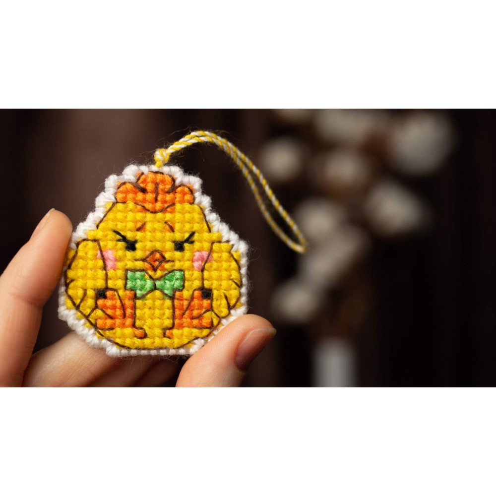 El kit incluye: cañamazo de plástico (plastic canvas) 10ct., hilos acrílicos y de lana de 9 colores, aguja, gráfico. Tamaño final: 1,97x2"/5x6cm. Marco no incluido