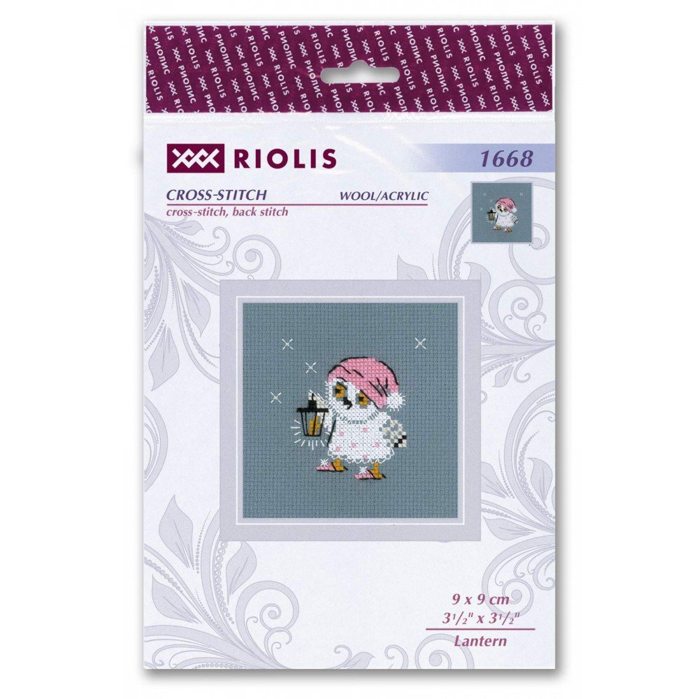 El kit incluye: tela Zweigart Aida 14ct. gris oscuro, hilos acrílicos y de lana de 5 colores, aguja, gráfico. Tamaño final: 9x9 cm. Marco no incluido