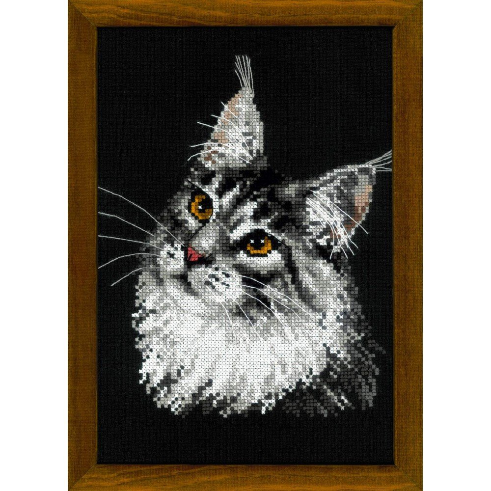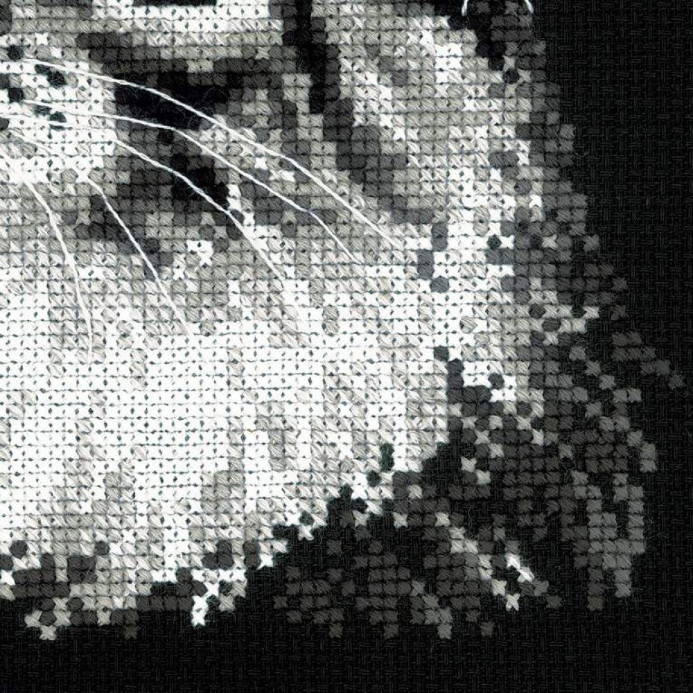 El kit incluye: tela Zweigart Aida 10ct. negra, hilos acrílicos y de lana de 11 colores, aguja, gráfico. Tamaño final: 21x30cm. Marco no incluido