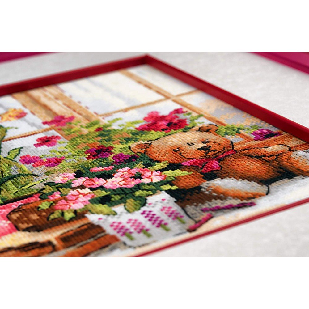 El kit incluye: tela Zweigart Aida 14ct. blanca, Anchor mouline e hilos de lana/acrílico 32 colores, aguja, gráfico. Tamaño final: 25x25cm. Marco no incluido