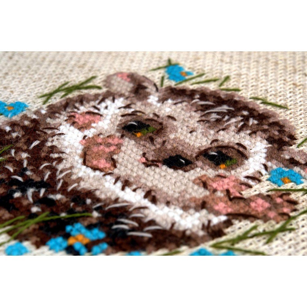 El kit incluye: tela Zweigart Aida 14ct. lino, hilos acrílicos y de lana 11 colores, aguja, gráfico. Tamaño final: 5.12x5.12"/13x13cm. Marco no incluido