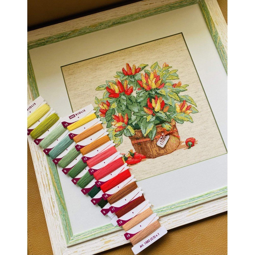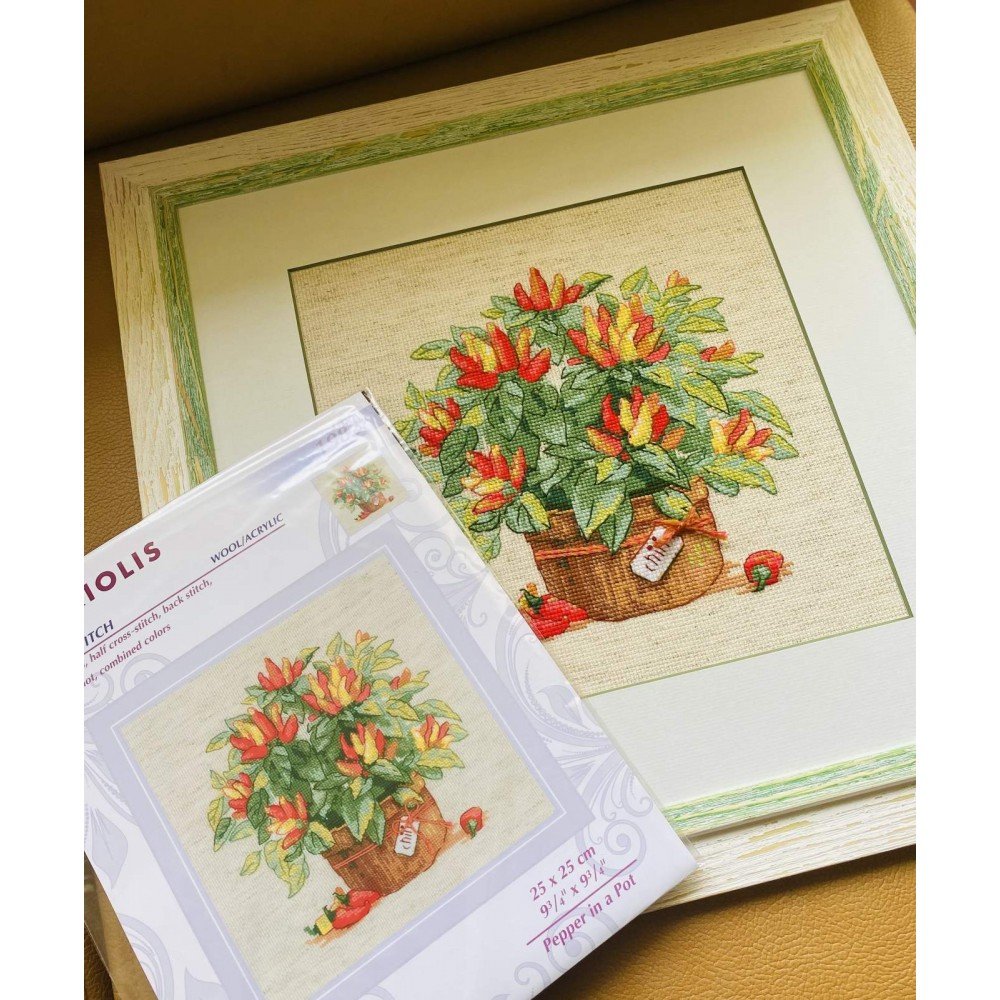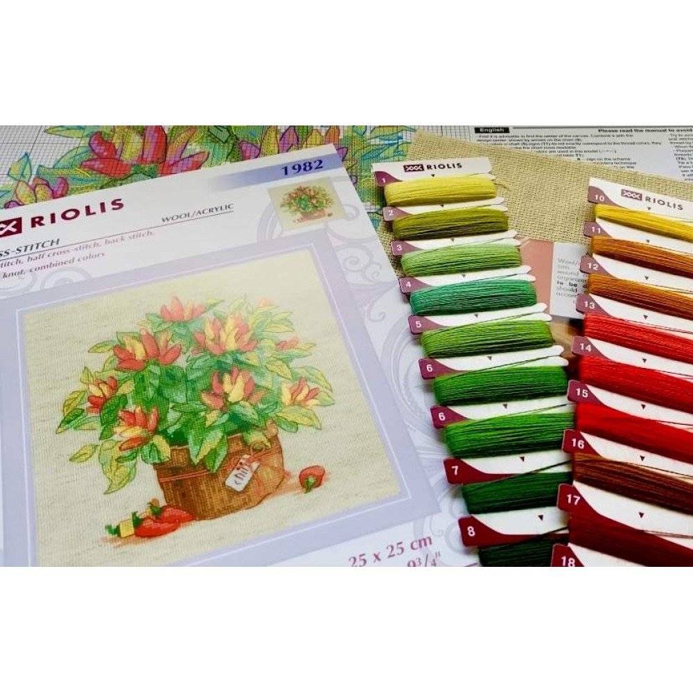 El kit incluye: tela Zweigart Aida 14ct. lino, hilos acrílicos y de lana 19 colores, aguja, gráfico. Tamaño final: 9¾x9¾"/25x25cm. Marco no incluido