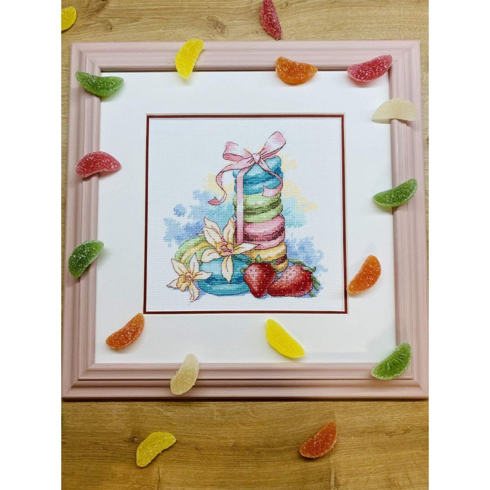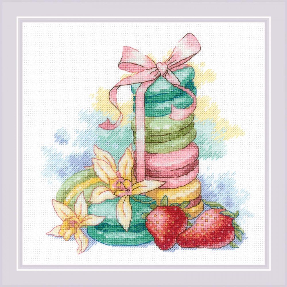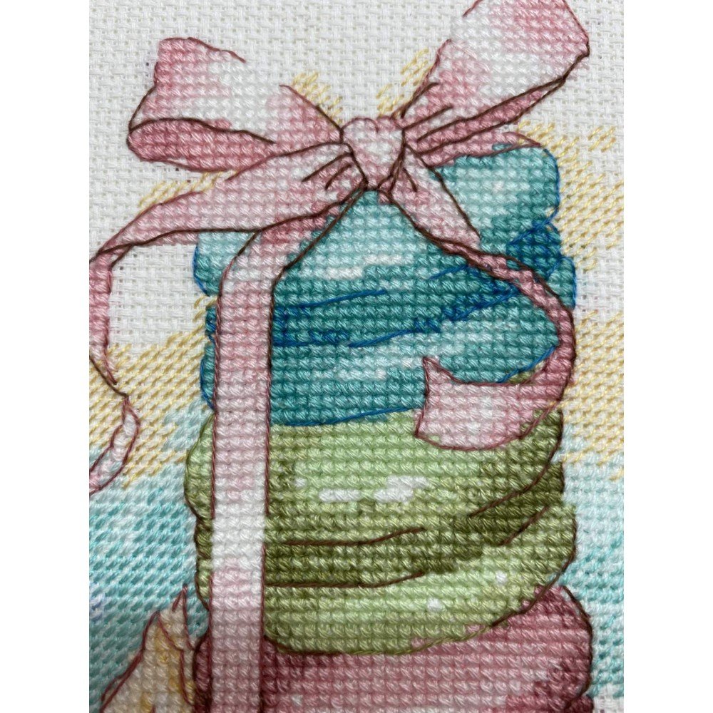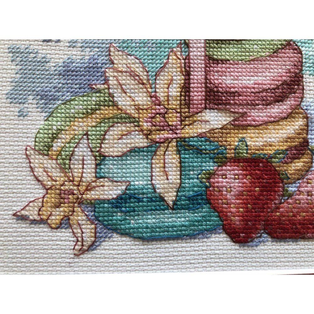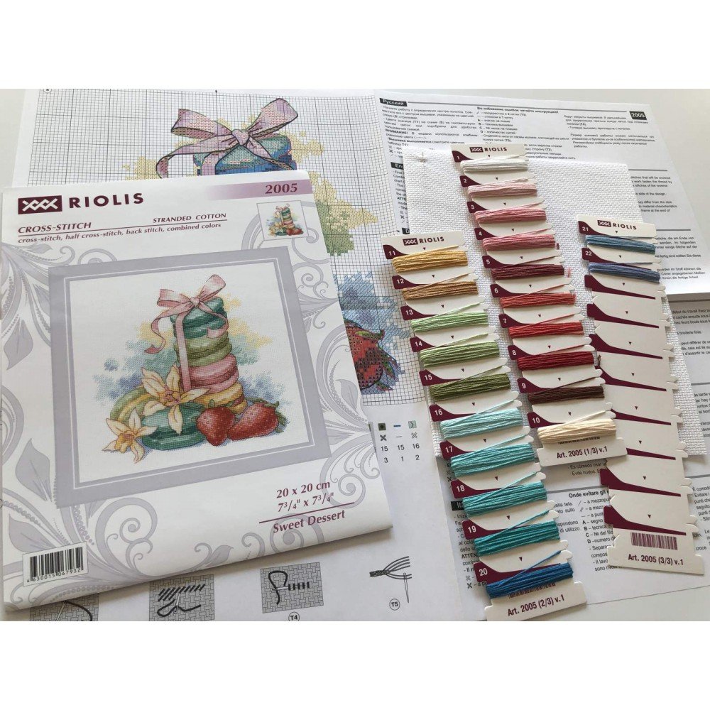El kit incluye: tela Zweigart Aida 14ct. blanca, hilos Anchor mouline 22 colores, aguja, gráfico. Tamaño final: 7¾x7¾"/20x20cm. Marco no incluido