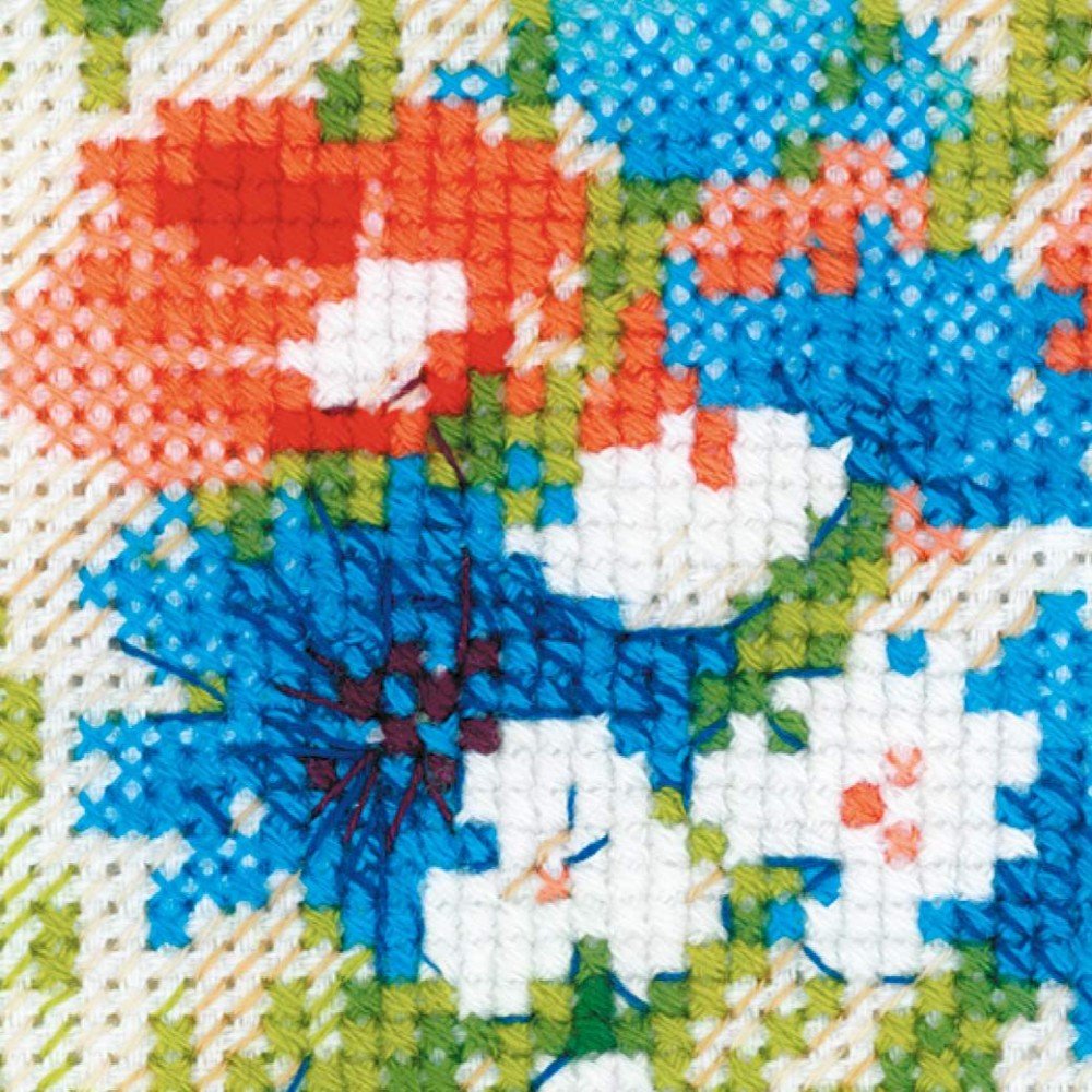 El kit incluye: tela Zweigart Aida 14ct. blanca, hilos Anchor mouline 13 colores, aguja, gráfico. Tamaño final: 5.91x7.09"/15x18cm. Marco no incluido