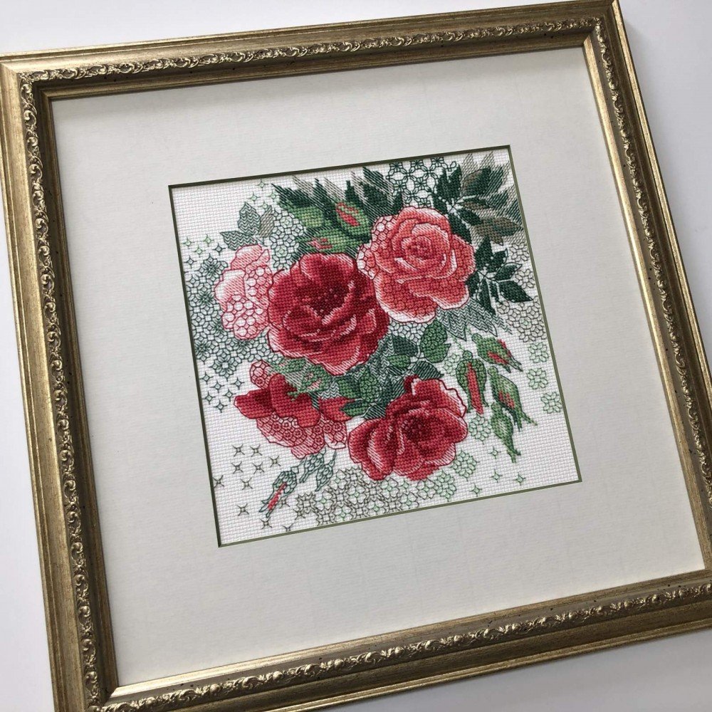 El kit incluye: tela Zweigart Aida 14ct. blanca, hilos Anchor mouline 10 colores, aguja, gráfico. Tamaño final: 7¾x7¾"/20x20cm. Marco no incluido