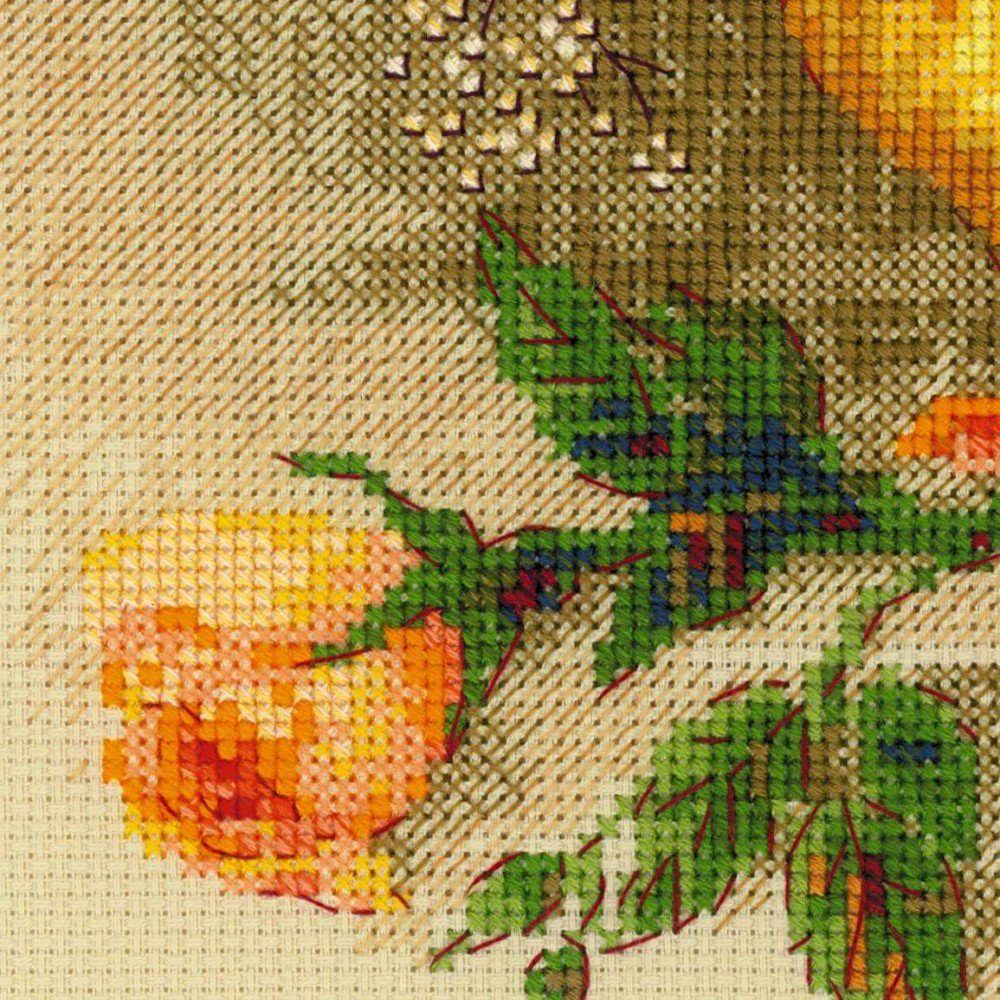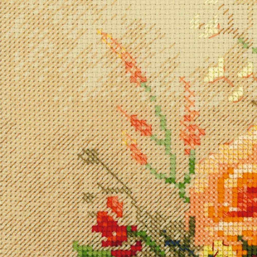 El kit incluye: tela Zweigart Aida 14ct. beige, hilos Anchor mouline 26 colores, aguja, gráfico. Tamaño final: 30x40 cm. Marco no incluido