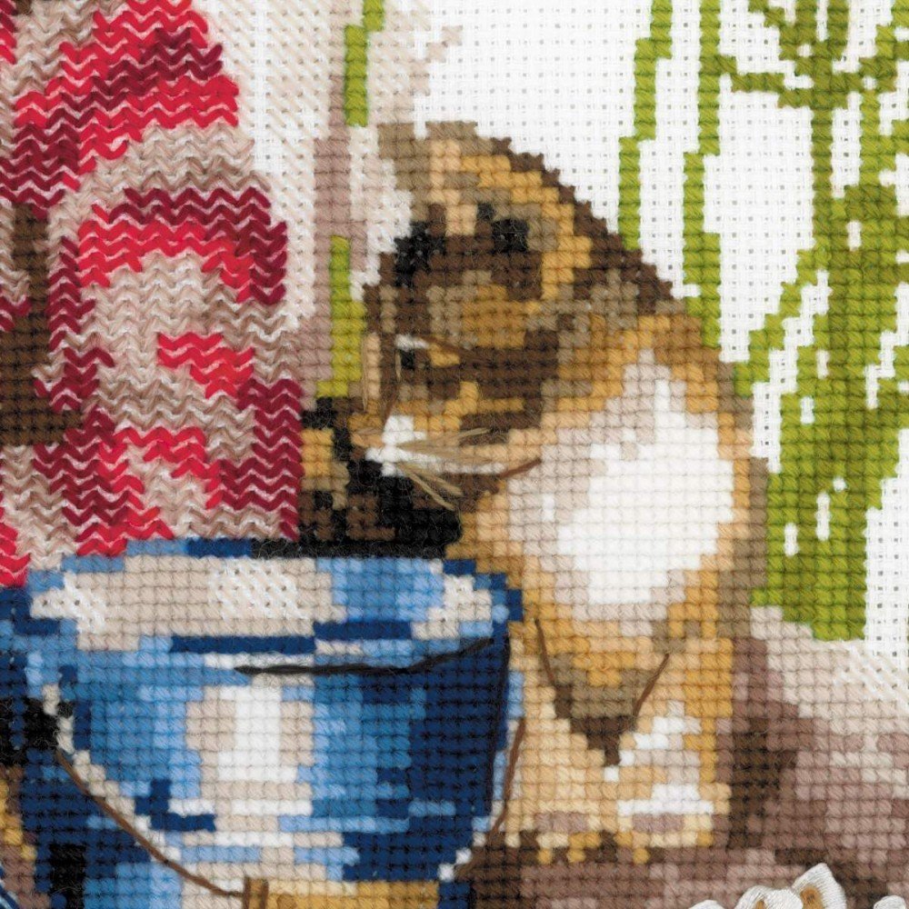 El kit incluye: tela Zweigart Aida 14ct. blanca, hilos acrílicos y de lana de 24 colores, aguja, gráfico. Tamaño final: 30x30 cm. Marco no incluido