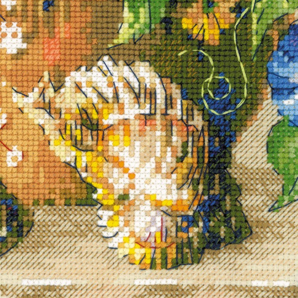 El kit incluye: tela Zweigart Aida 14ct. beige, hilos Anchor mouline 30 colores, aguja, gráfico. Tamaño final: 40x50 cm / 15,75x19,69". Marco no incluido