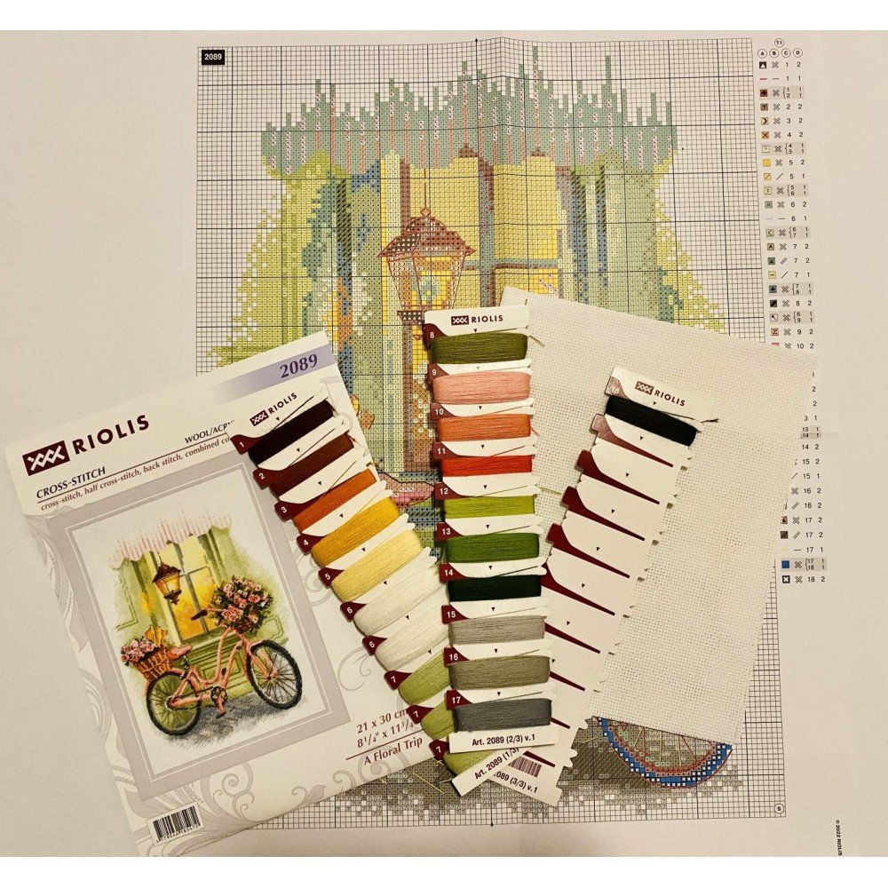 El kit incluye: tela Zweigart Aida 14ct. blanca, hilos acrílicos y de lana de 18 colores, aguja, gráfico. Tamaño final: 21x30cm. Marco no incluido