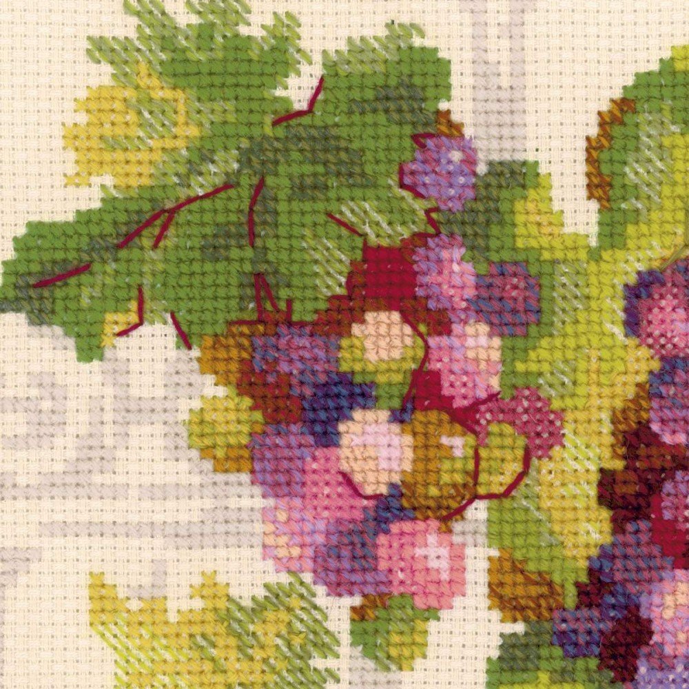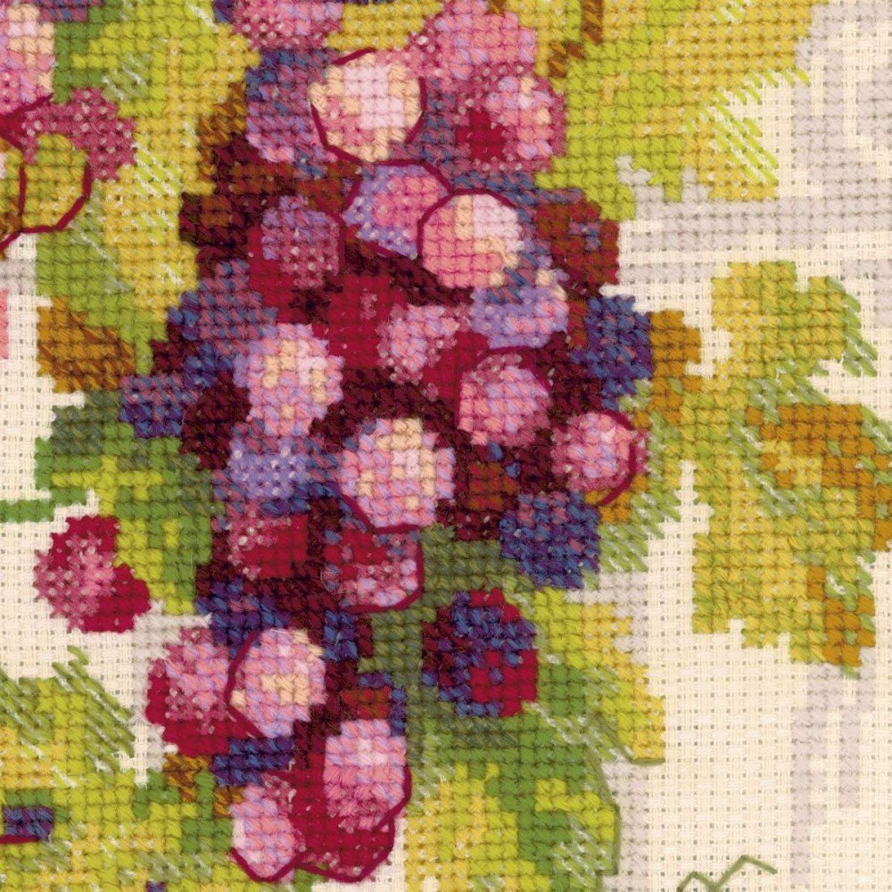 El kit incluye: tela Zweigart Aida 14ct. crema, hilos acrílicos y de lana de 24 colores, aguja, gráfico. Tamaño final: 21x30cm. Marco no incluido