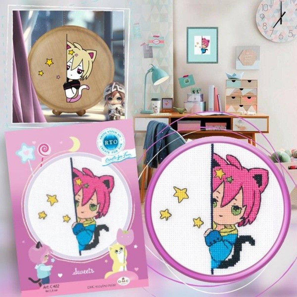 El kit incluye: tela Zweigart Aida 16ct. blanca, hilos DMC mouline 12 colores, aguja, gráfico. Tamaño final: 8.5x15cm/3.35x5.91". Marco no incluido