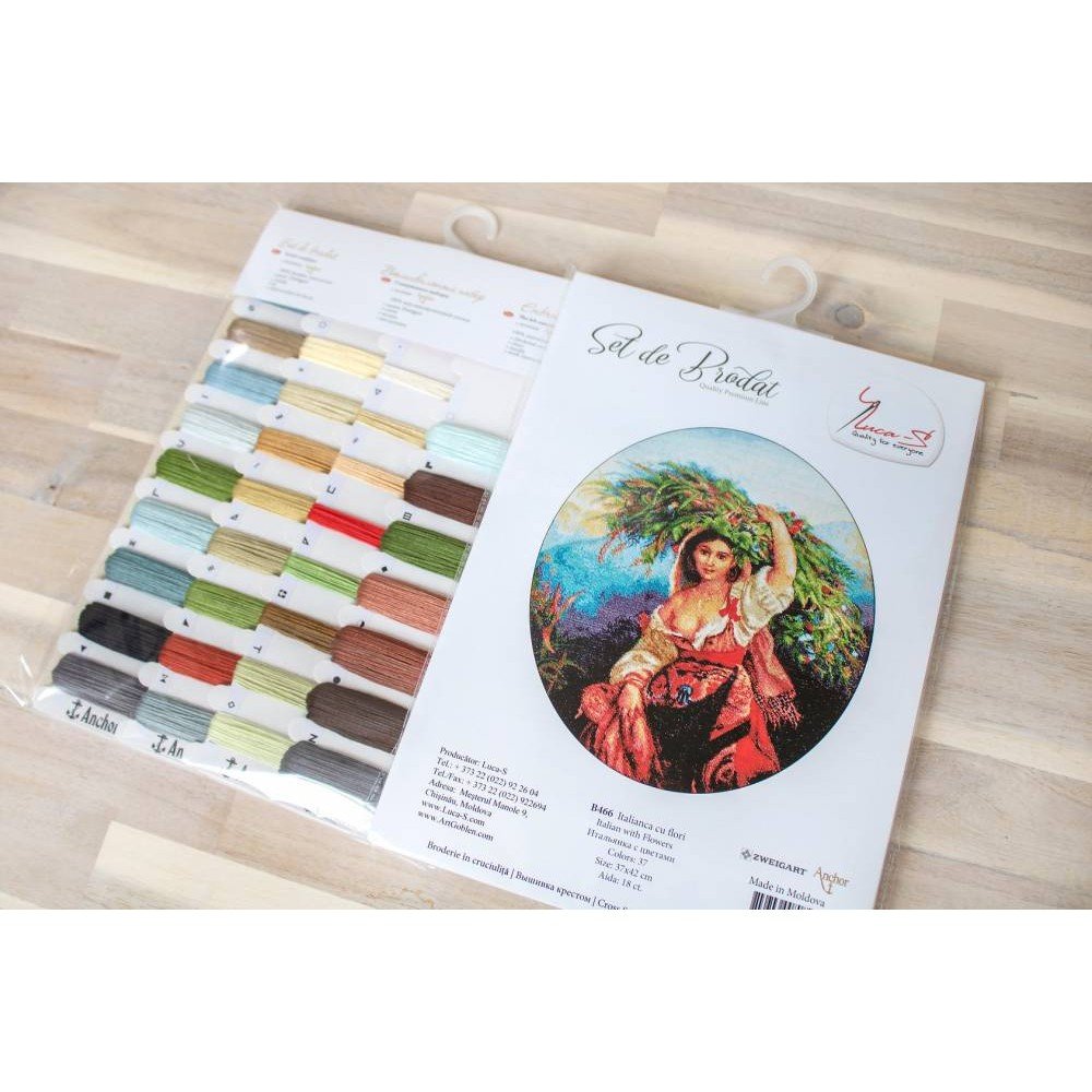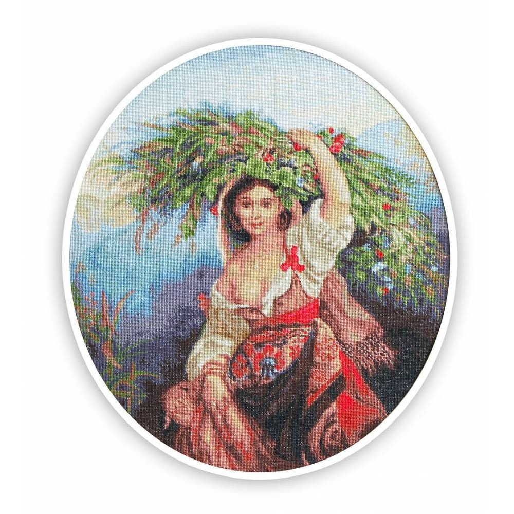 Kit contains: fabric Zweigart Aida 18ct. ivory, Anchor mouline threads 37 colours, needle, chart. Finished size: 37x42cm/14.57x16.54". Frame is not included