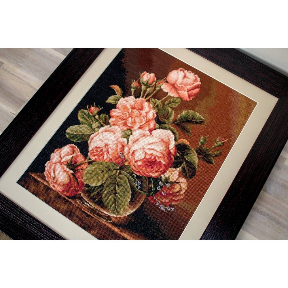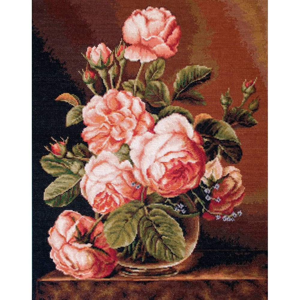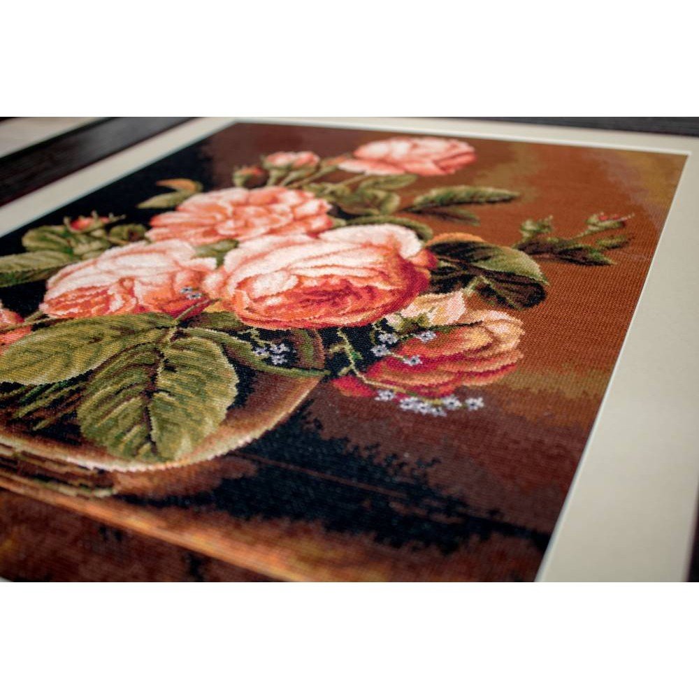 Kit contains: fabric Zweigart Aida 18ct. ivory, Anchor mouline threads 40 colours, needle, chart. Finished size: 34x43cm/13.39x16.93". Frame is not included