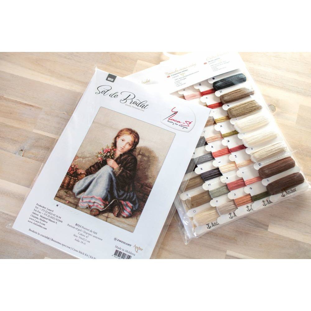 Kit contains: fabric Zweigart Aida 18ct. ivory, Anchor mouline threads 47 colours, needle, chart. Finished size: 33x42.5cm/12.99x16.73". Frame is not included