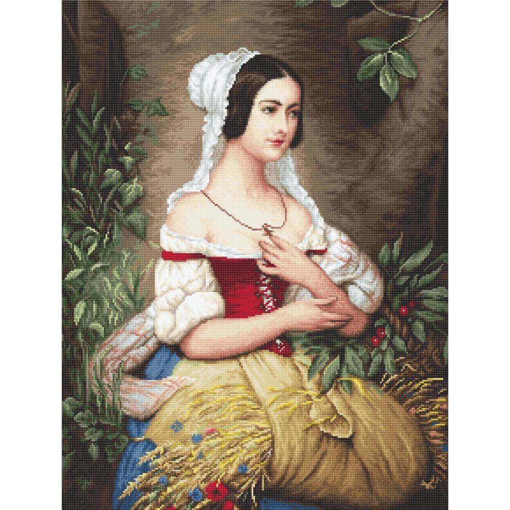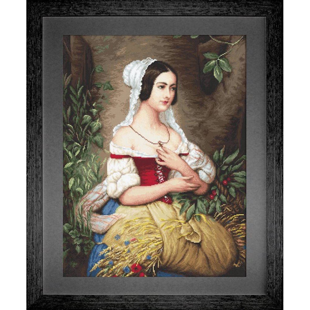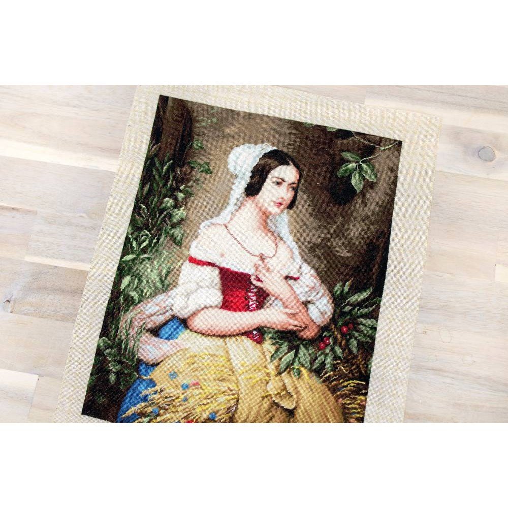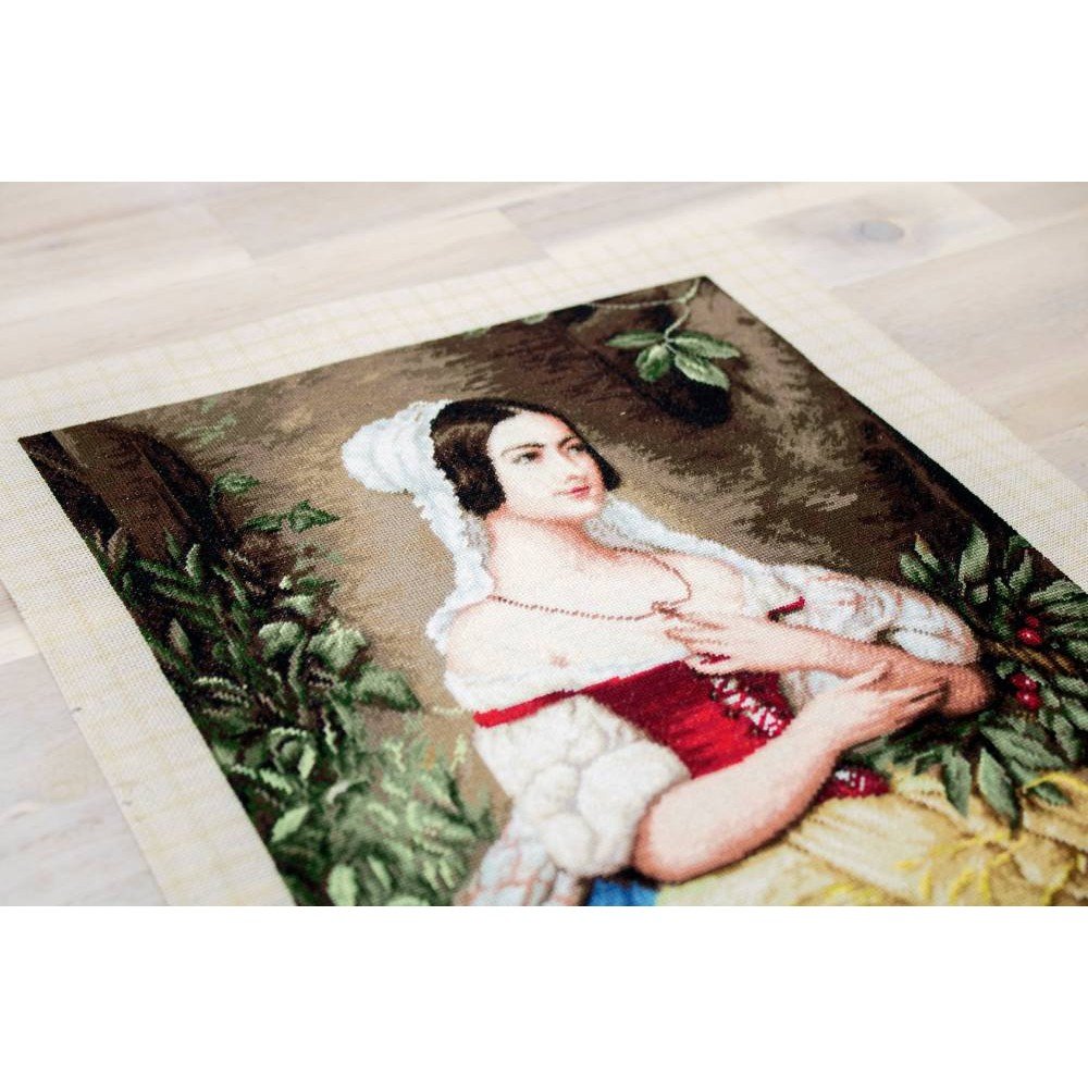 Kit contains: fabric Zweigart Aida 18ct. ivory, Anchor mouline threads 56 colours, needle, chart. Finished size: 31x41cm/12.2x16.14". Frame is not included