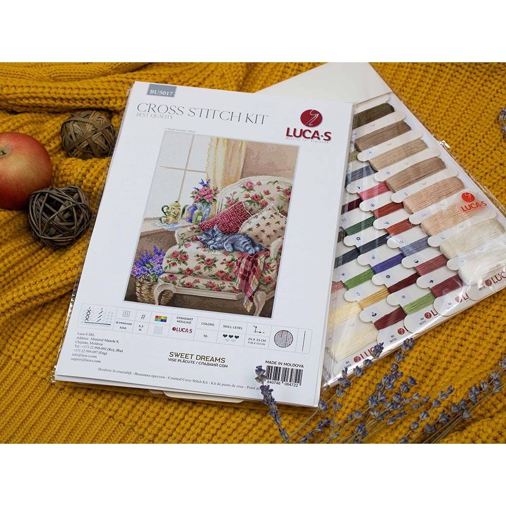 Kit contains: fabric Zweigart Aida 16ct. white, Luca-S mouline threads 56 colours, needle, chart. Finished size: 24x33cm/9.45x12.99". Frame is not included