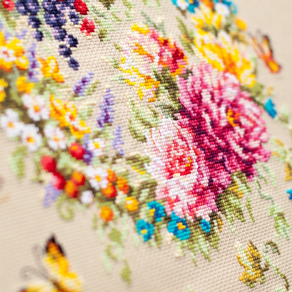 Kit contains: fabric Zweigart Aida 14ct. gray beige, Gamma mouline threads 36 colours, needle, chart. Finished size: 26x34cm/10.24x13.39". Frame is not included