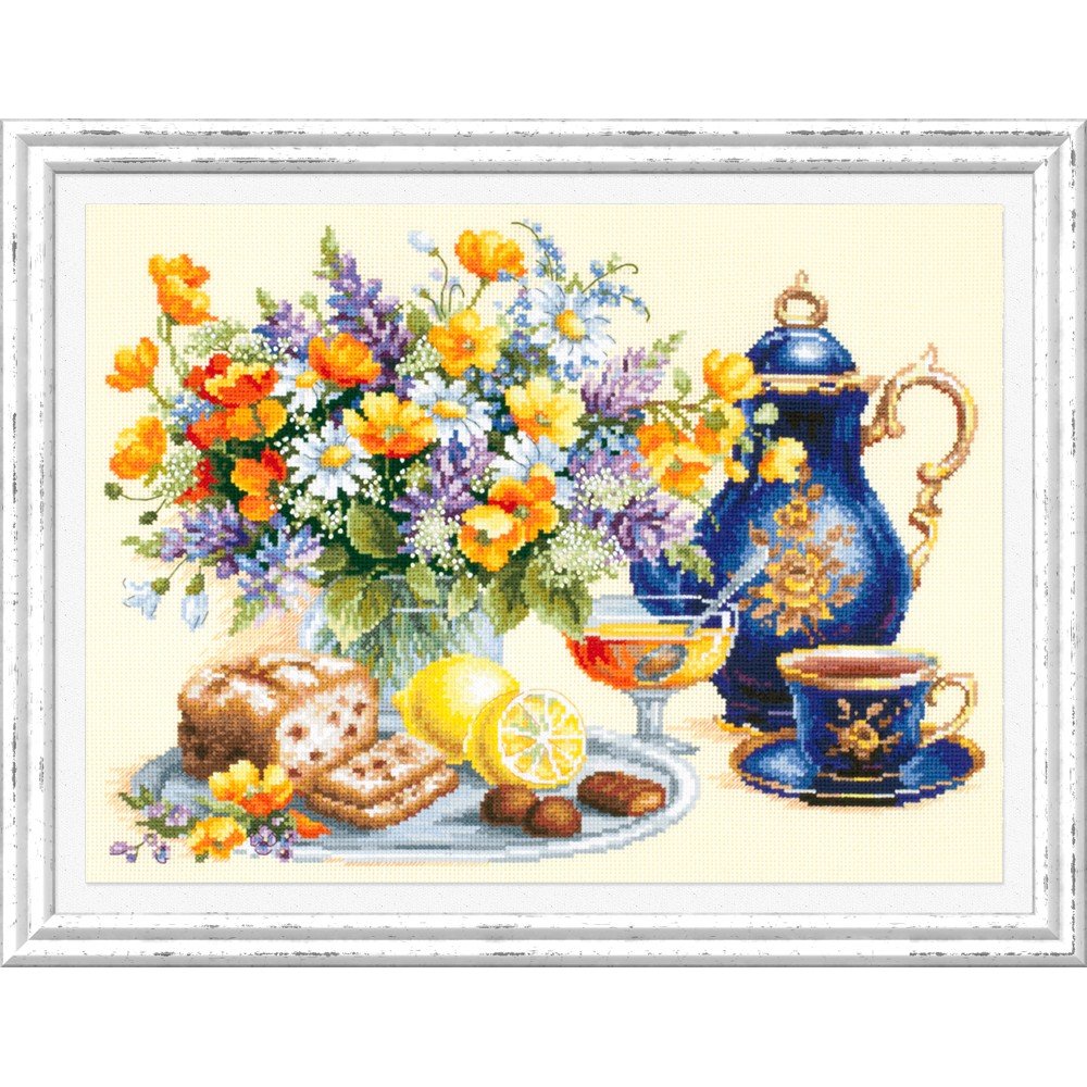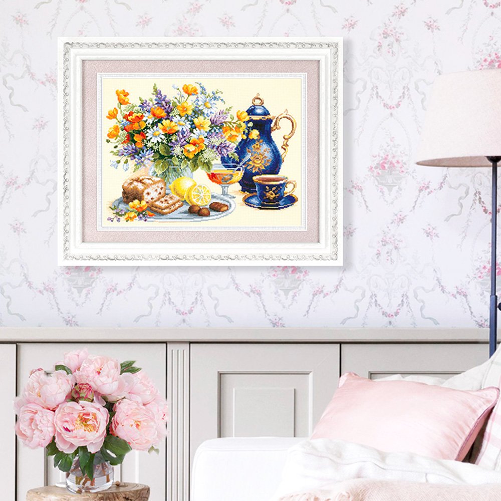Kit contains: fabric Zweigart Aida 14ct. ivory, Gamma mouline threads 46 colours, needle, chart. Finished size: 38x29cm/14.96x11.42". Frame is not included