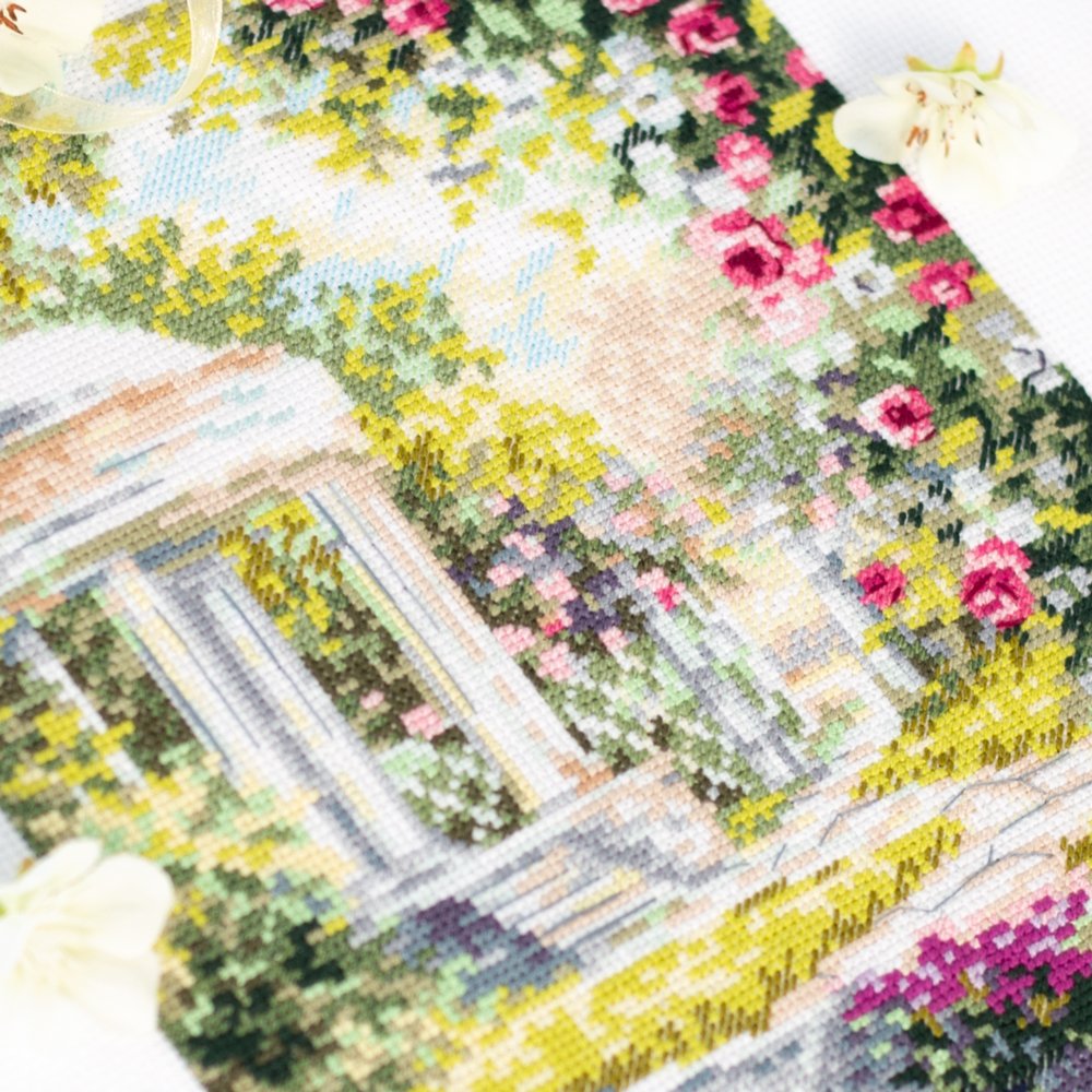 Kit contains: fabric Zweigart Aida 14ct. white, Gamma mouline threads 30 colours, needle, chart. Finished size: 20x28cm/7.87x11". Frame is not included